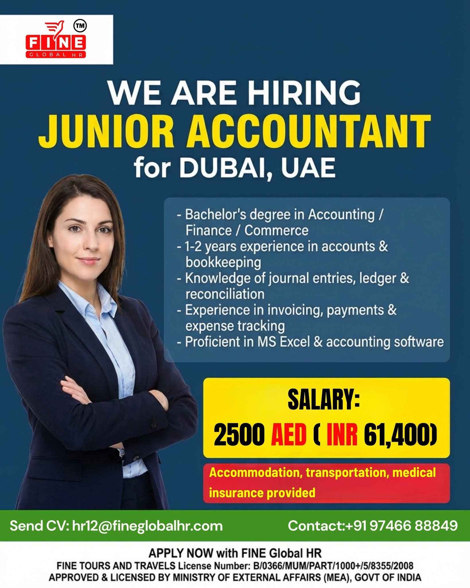 WE ARE HIRING JUNIOR ACCOUNTANT for DUBAI,