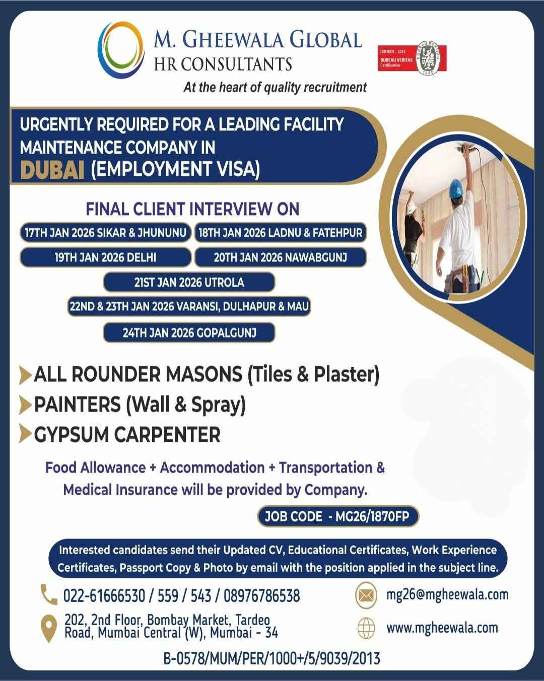 HIRING MASON FOR DUBAI