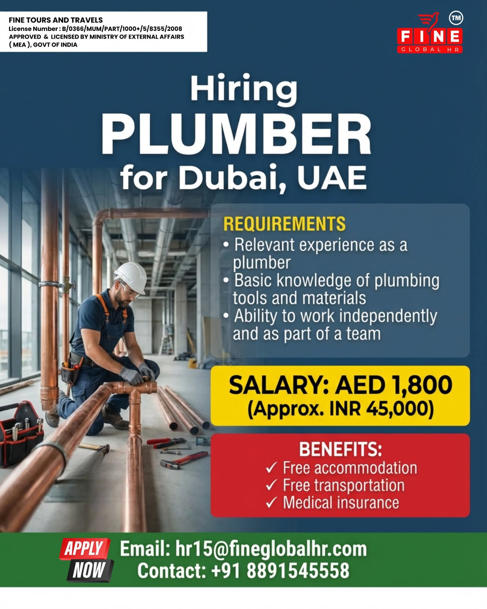 Hiring PLUMBER for Dubai, UAE