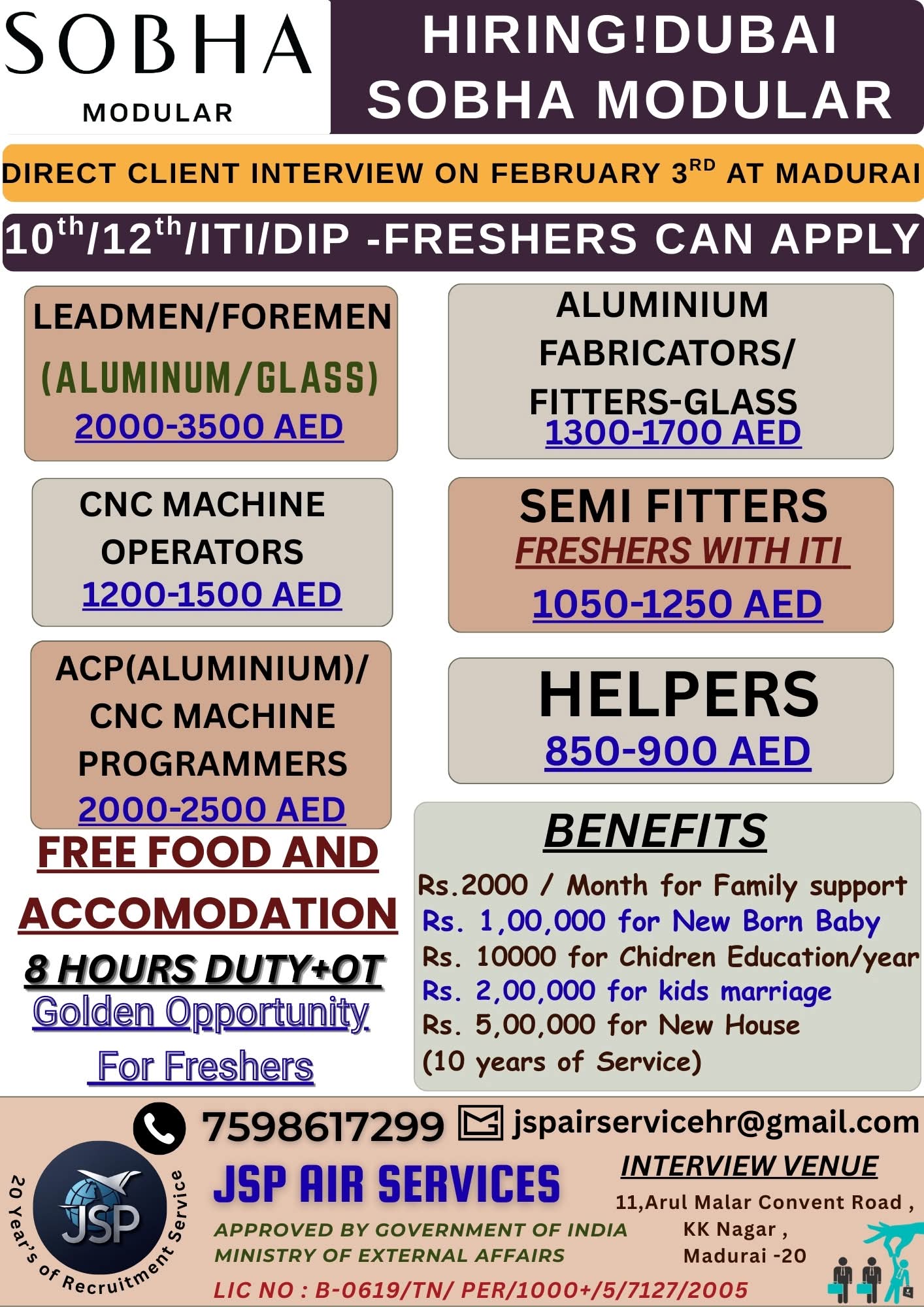 HIRING!DUBAI SOBHA MODULAR