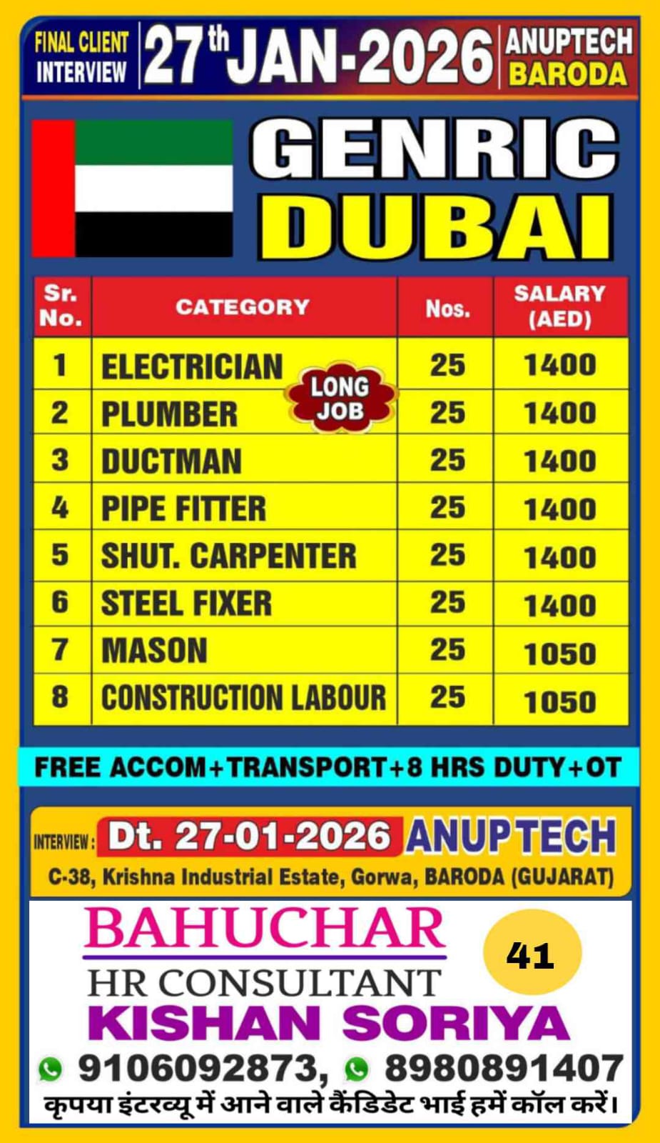 Free Recruitment Long Term Jobs in UAE