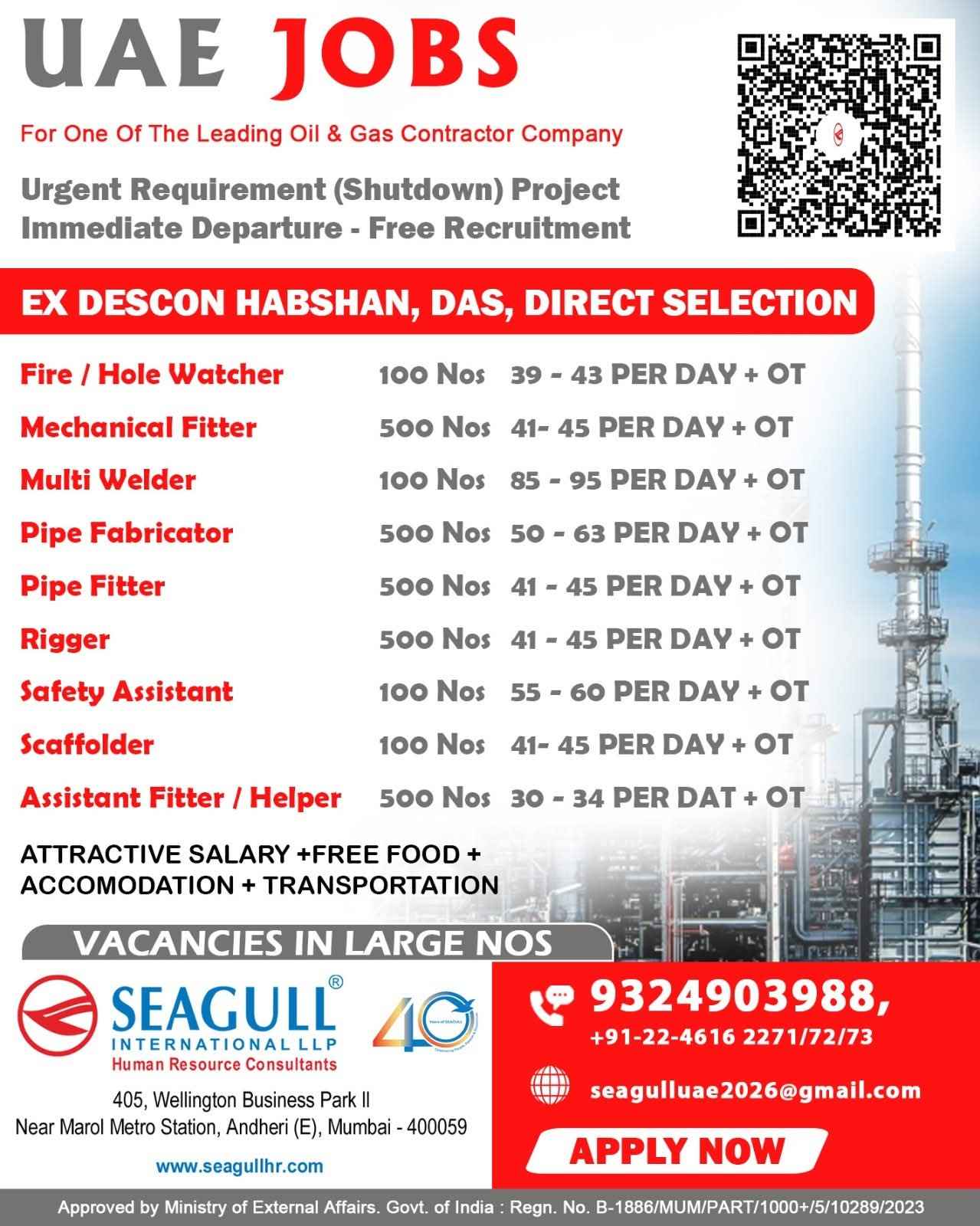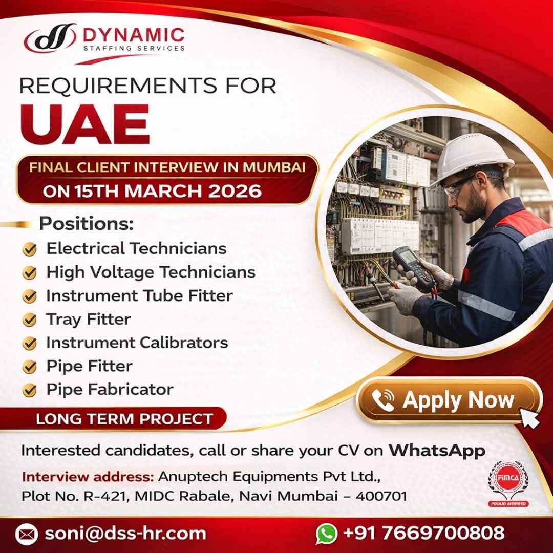 UAE JOBS For One Of The Leading Oil & Gas Contractor Company Urgent Requirement (Shutdown) Project Immediate Departure - Free Recruitment