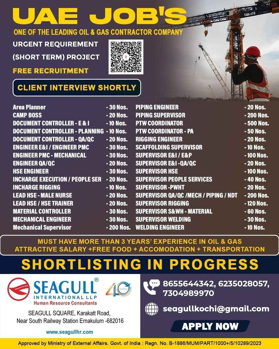 UAE JOB'S Oil & Gas Project FREE RECRUITMENT