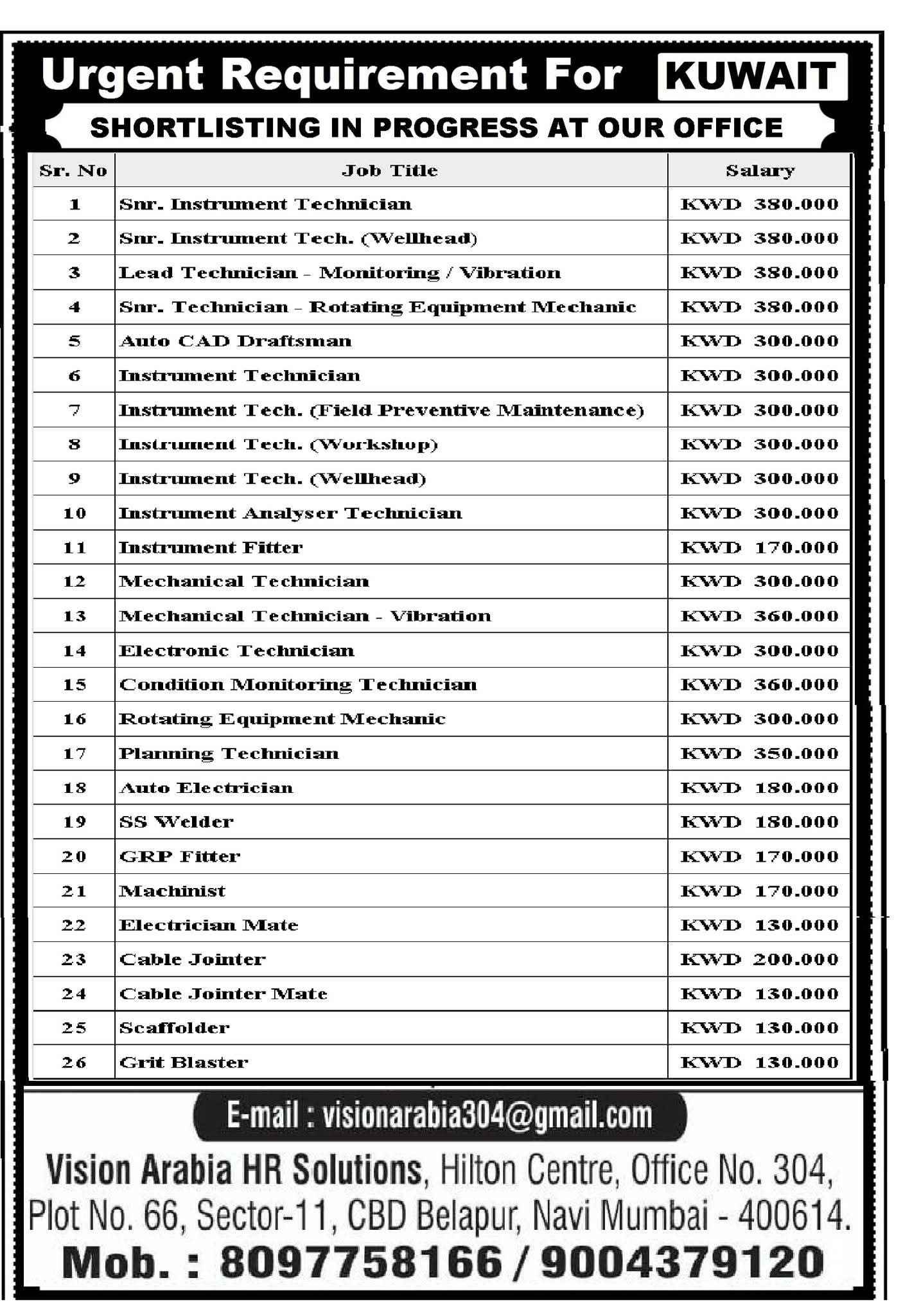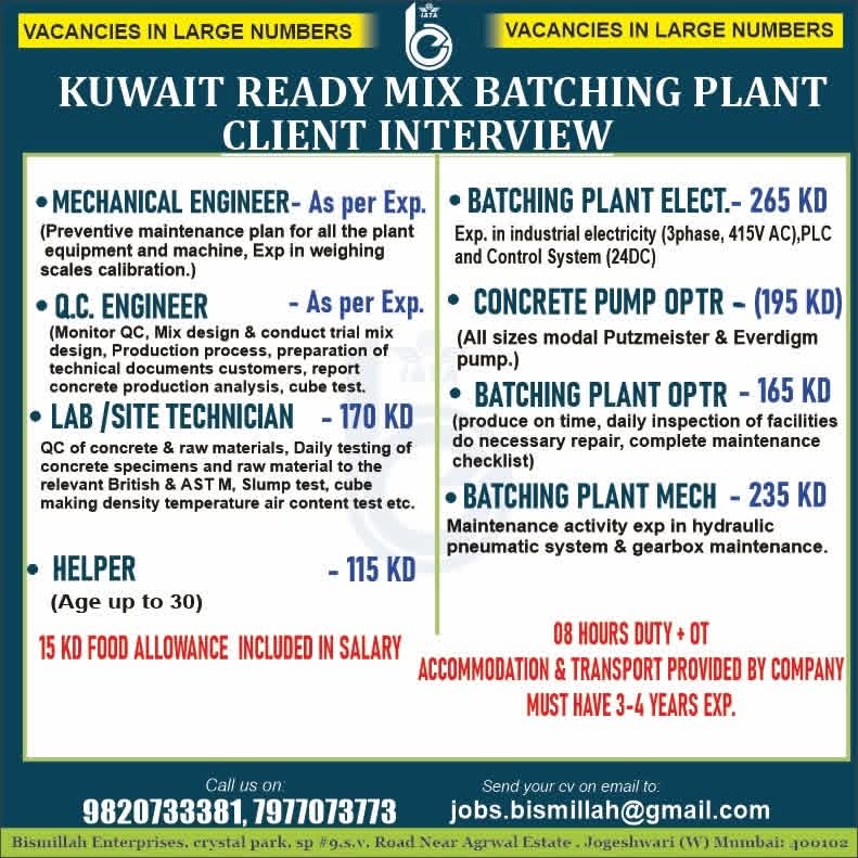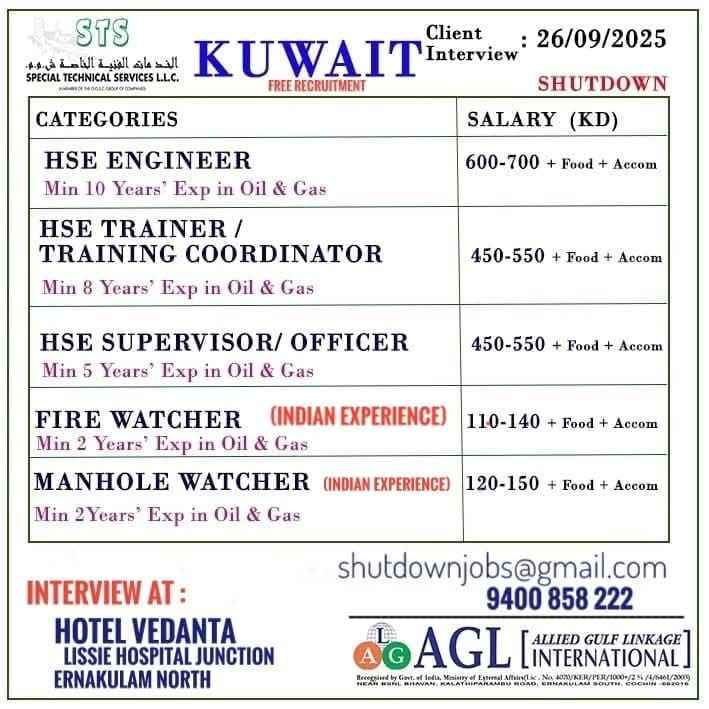 Urgent Requirement For KUWAIT