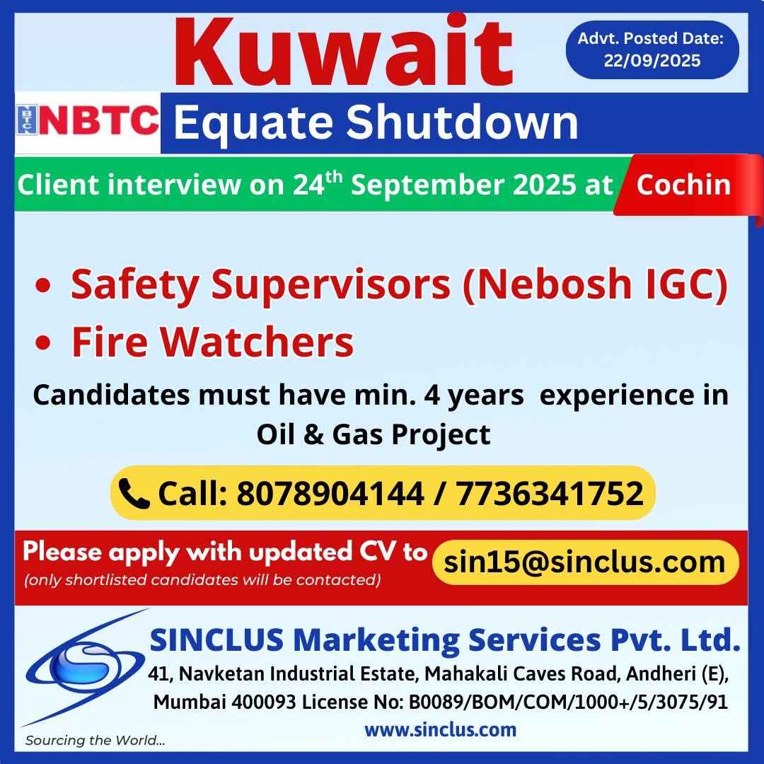 We are Hiring for Kuwait for an Oil & Gas Company
