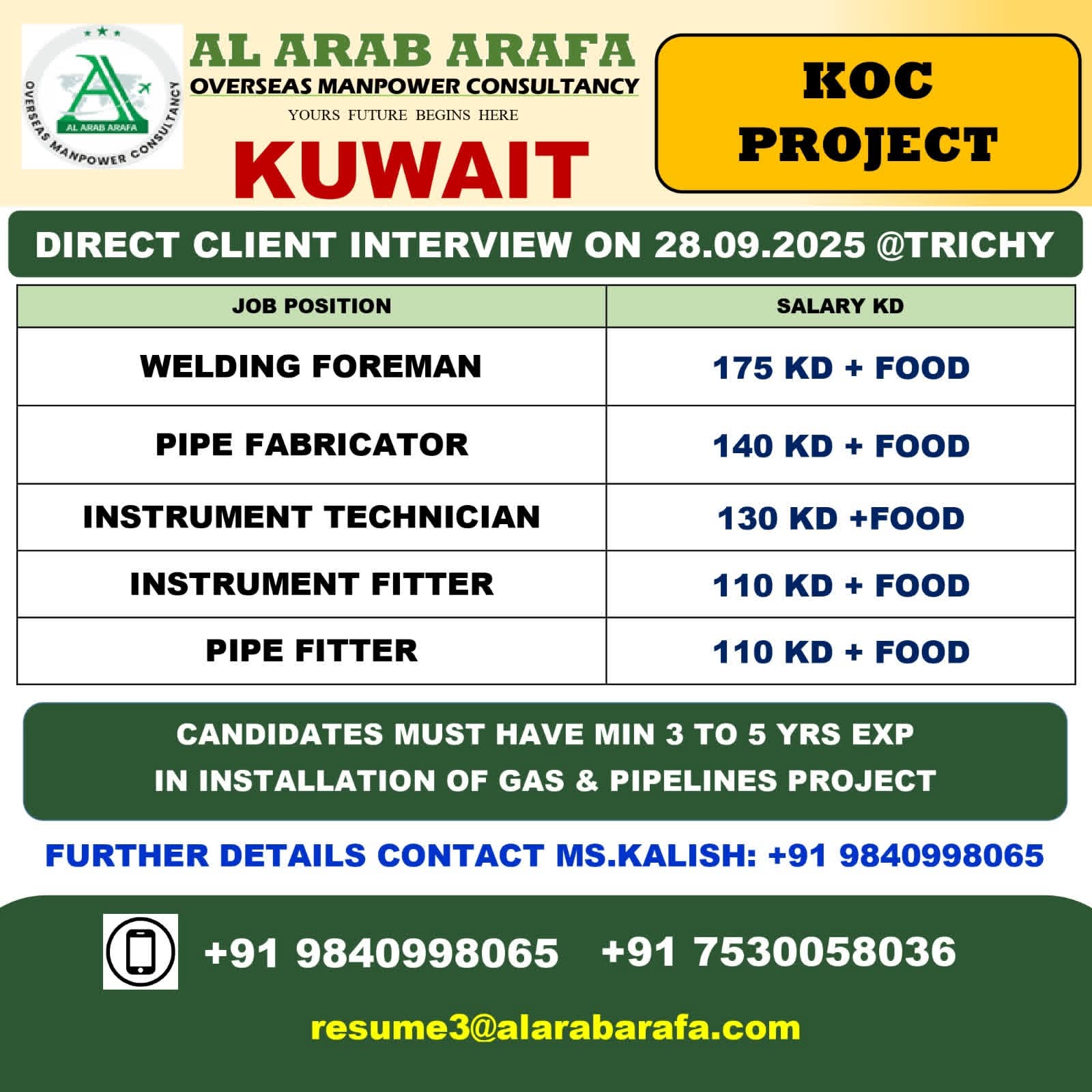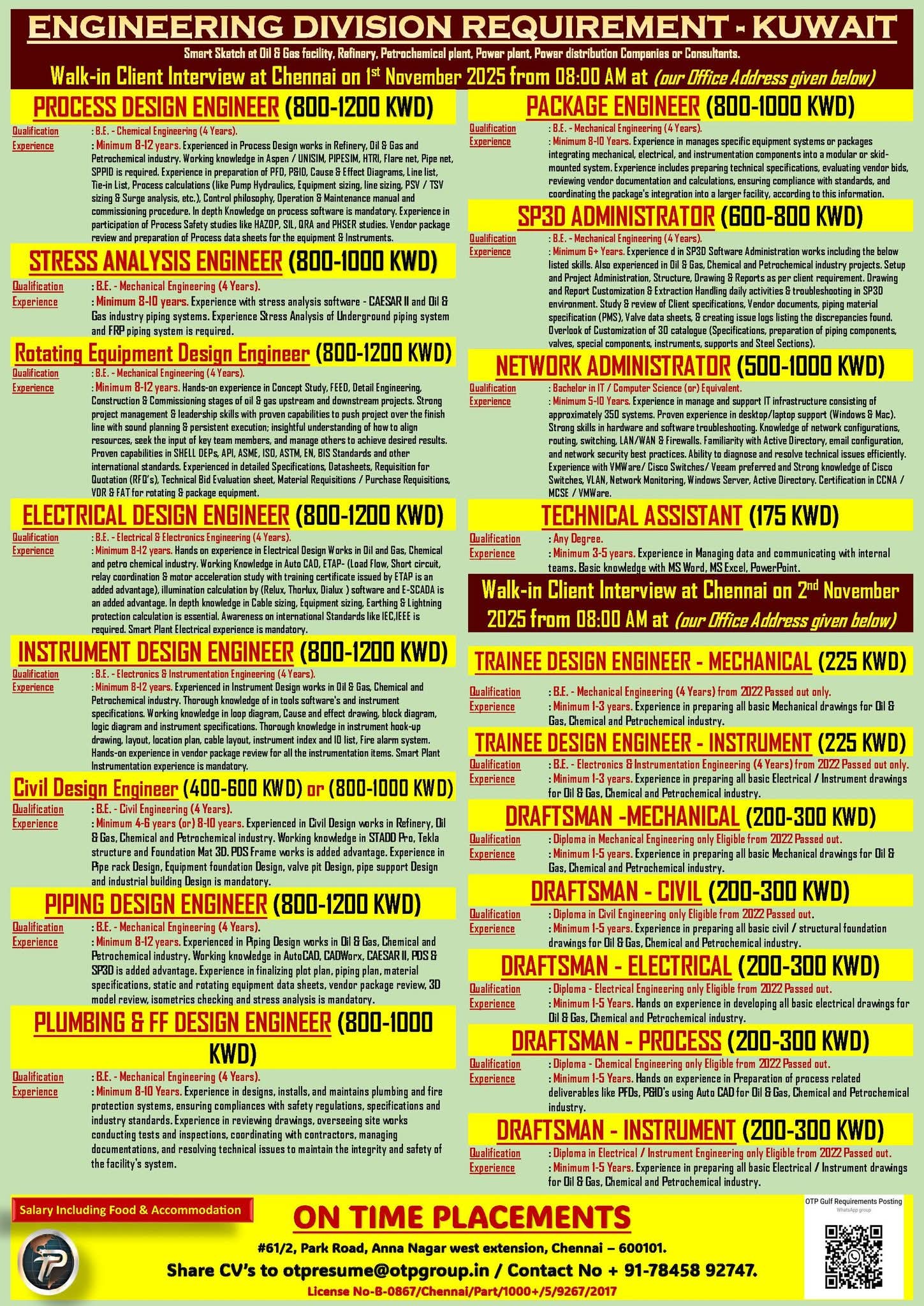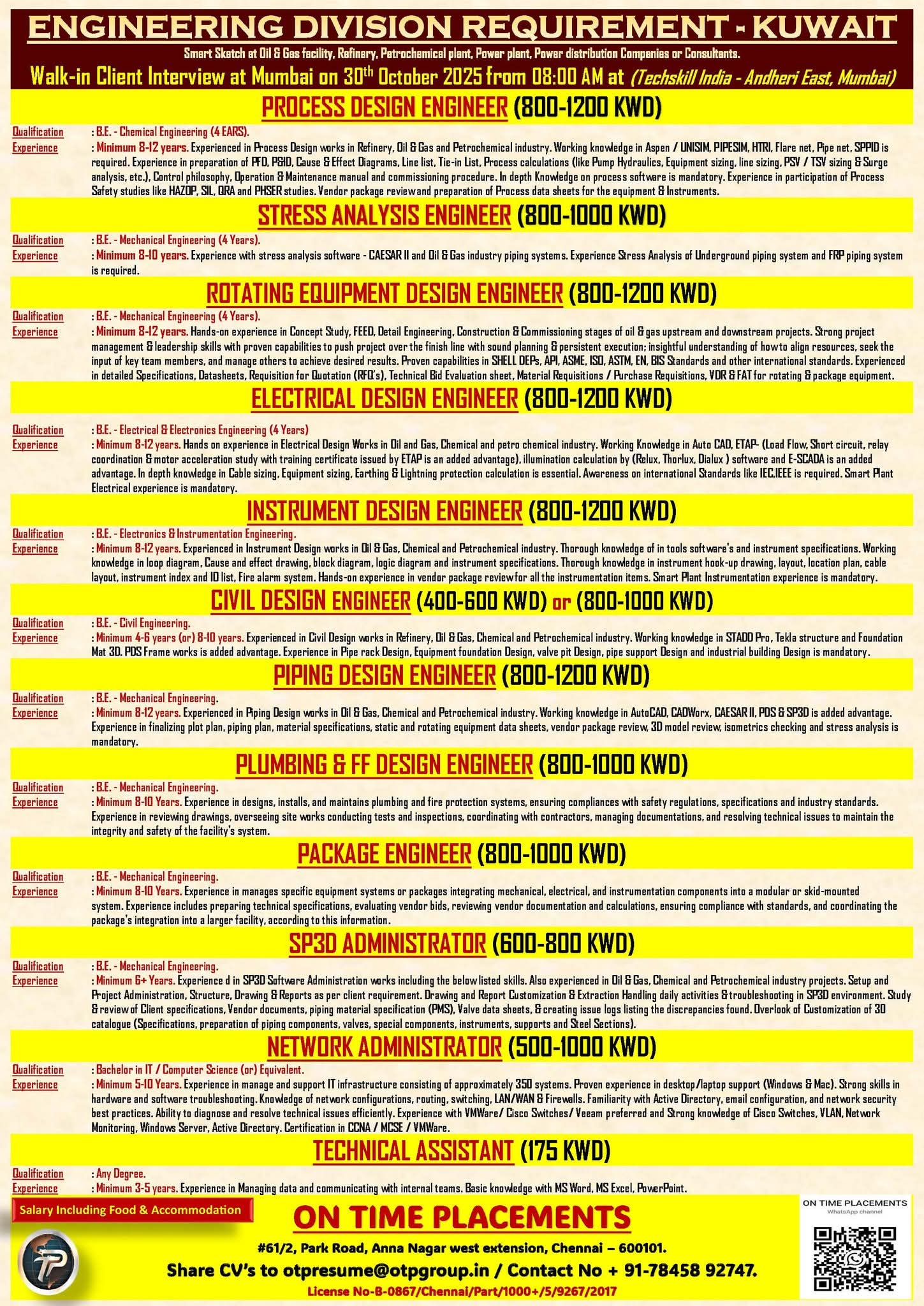 URGENT REQUIREMENT KNPC PROJECT, KUWAIT