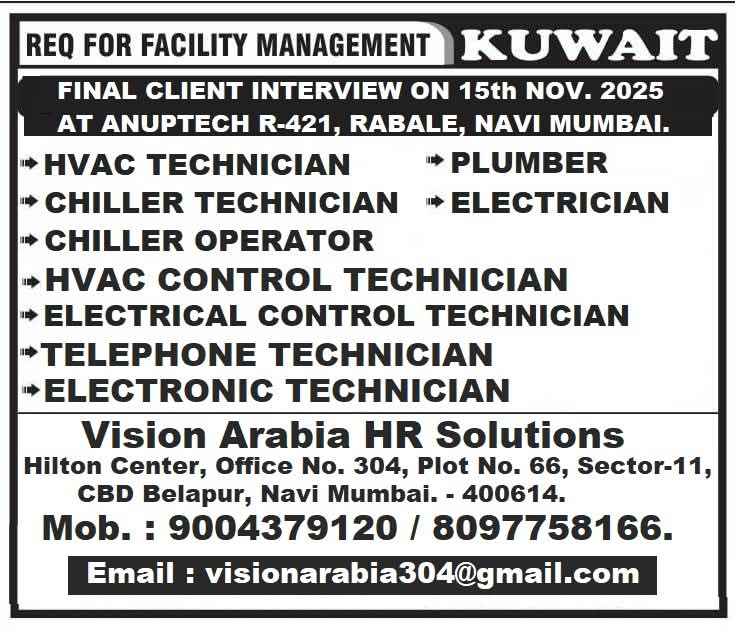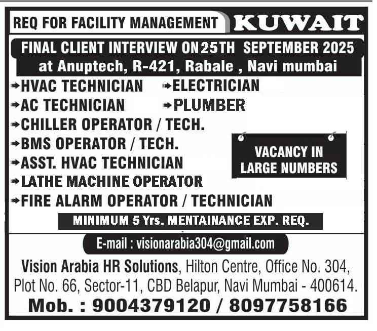 Required for FACILITY MAINTENANCE IN KUWAIT