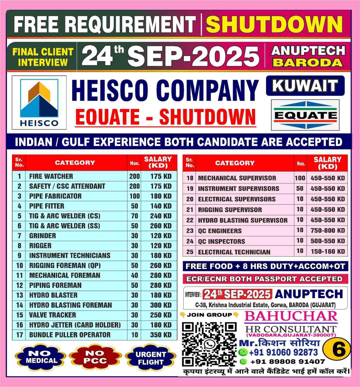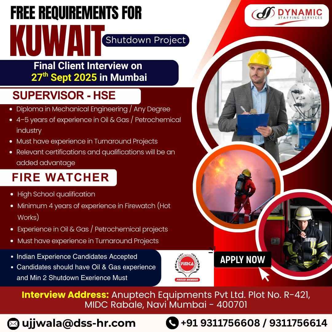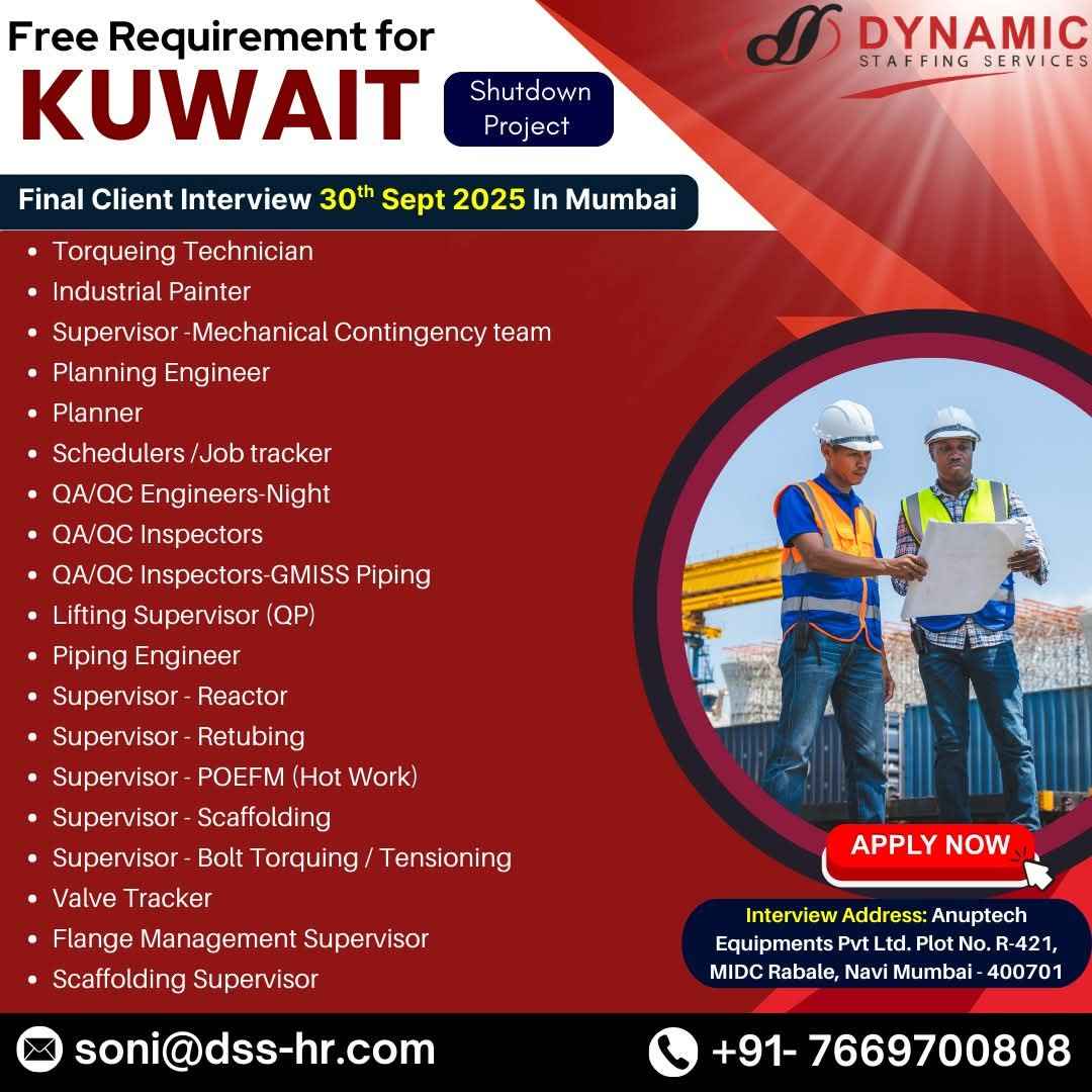 URGENT HIRING FOR EQUATE SHUTDOWN KUWAIT