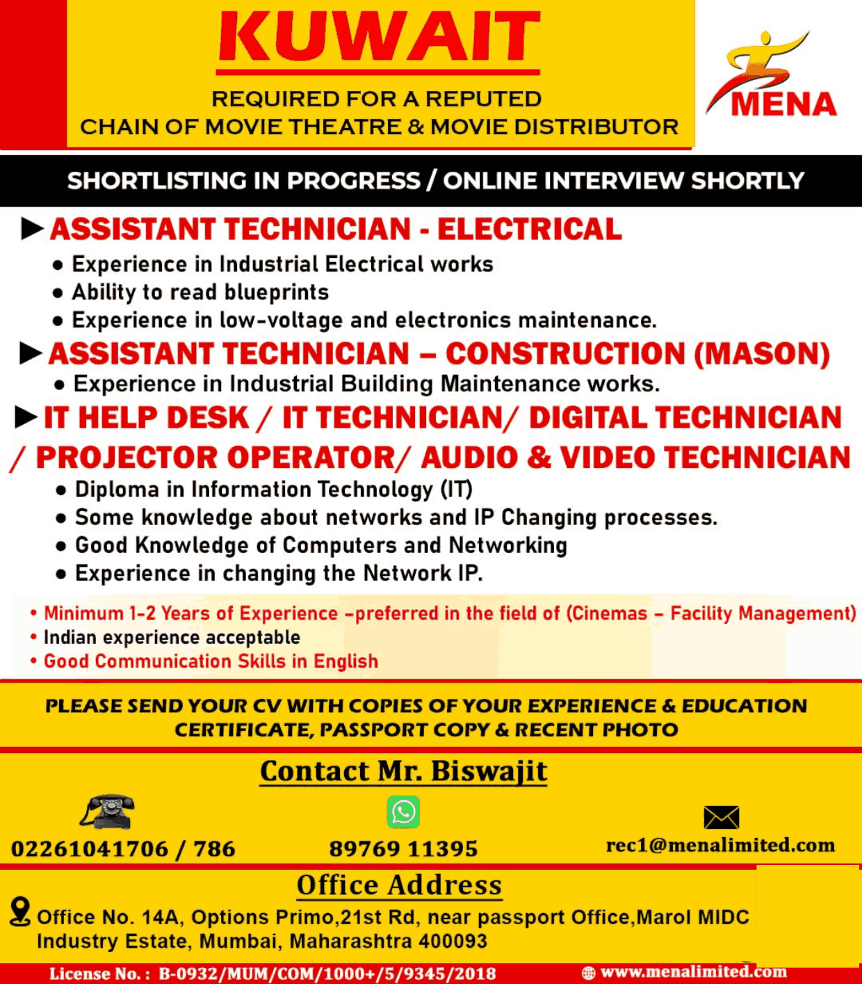 URGENT REQUIREMENT FOR KUWAIT