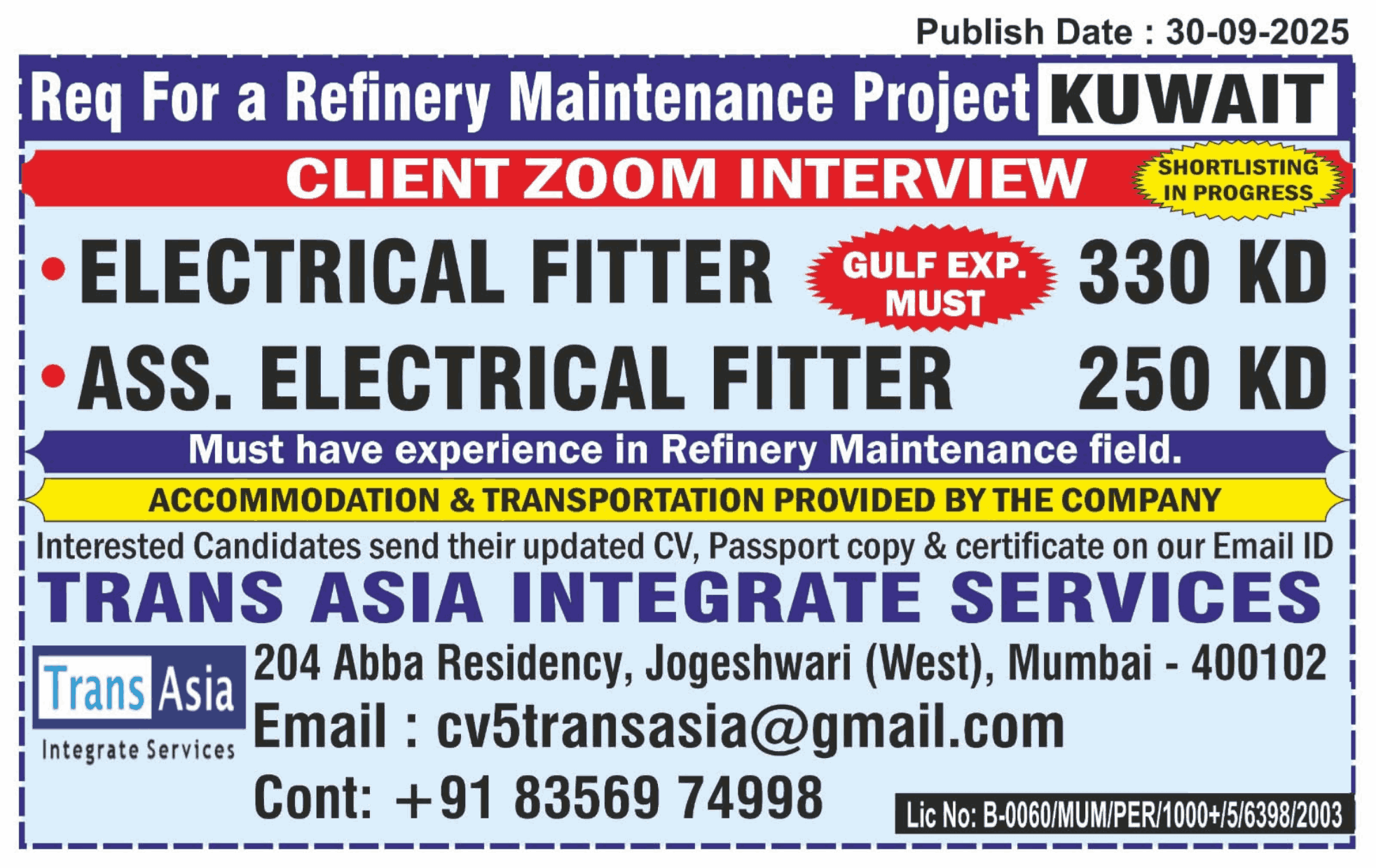 URGENTLY REQUIREMENT FOR KUWAIT