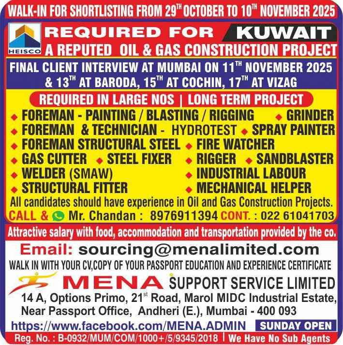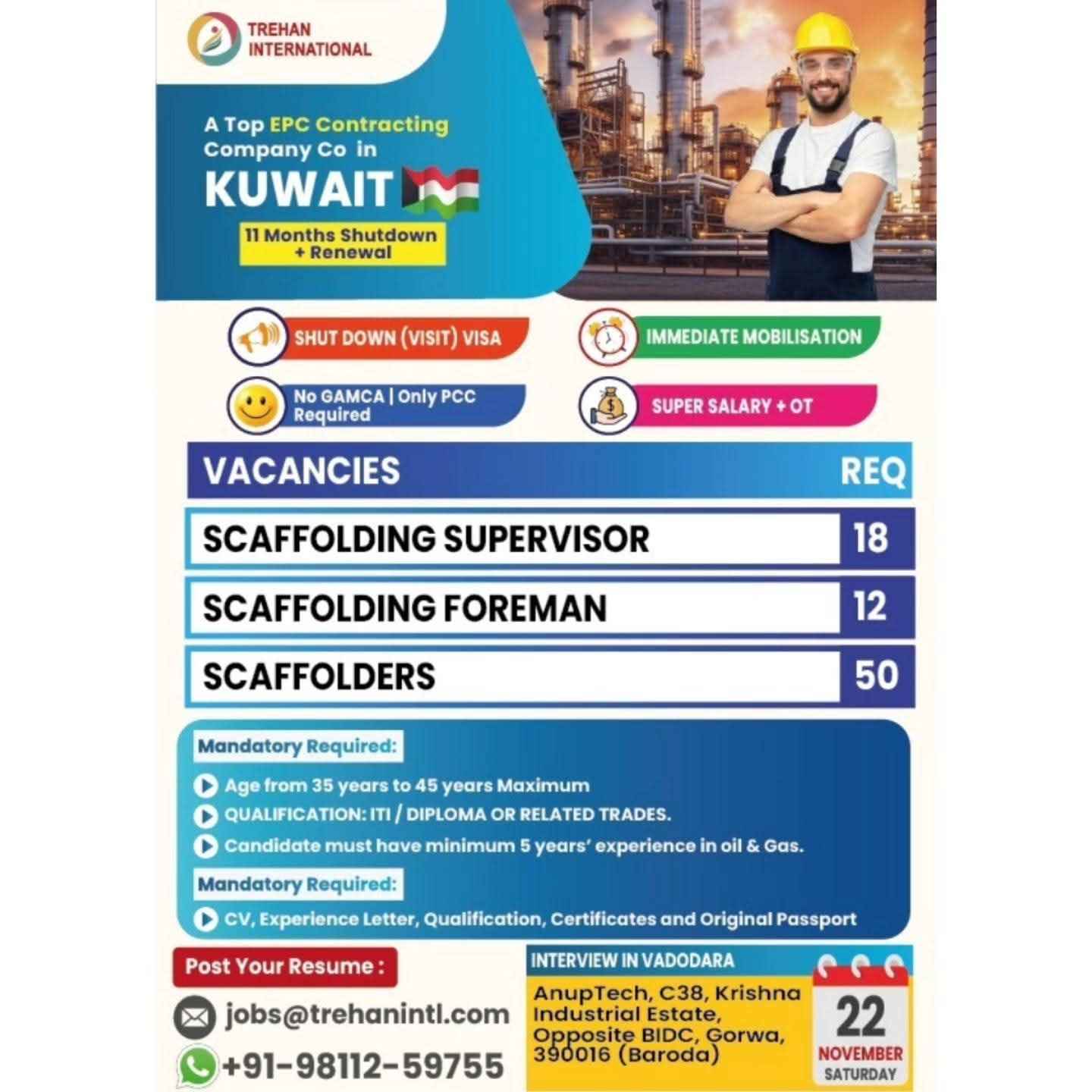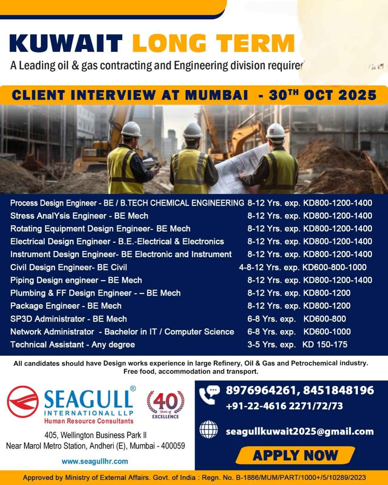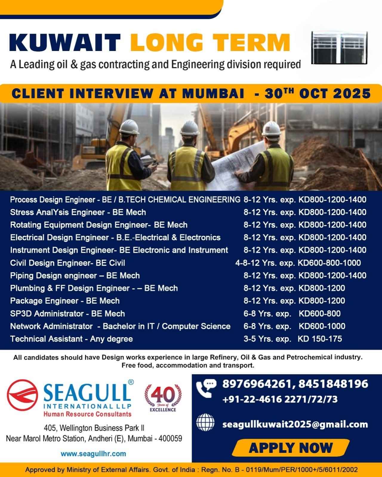 REQUIRED FOR LONG TERM - OIL & GAS CONSTRUCTION PROJECT KUWAIT