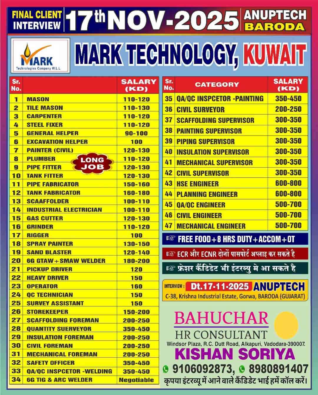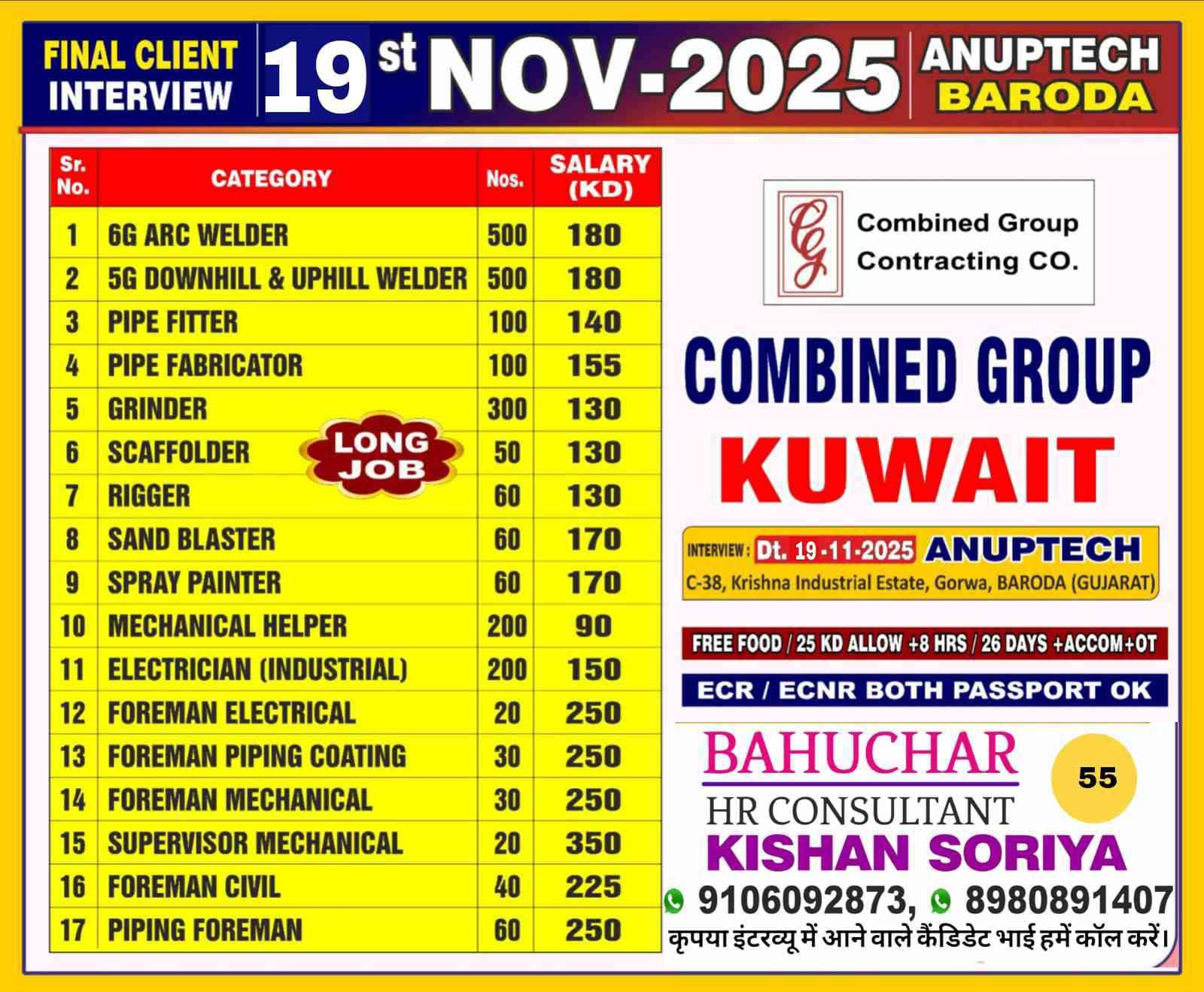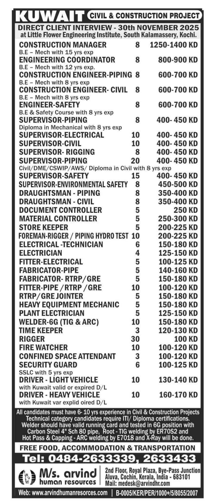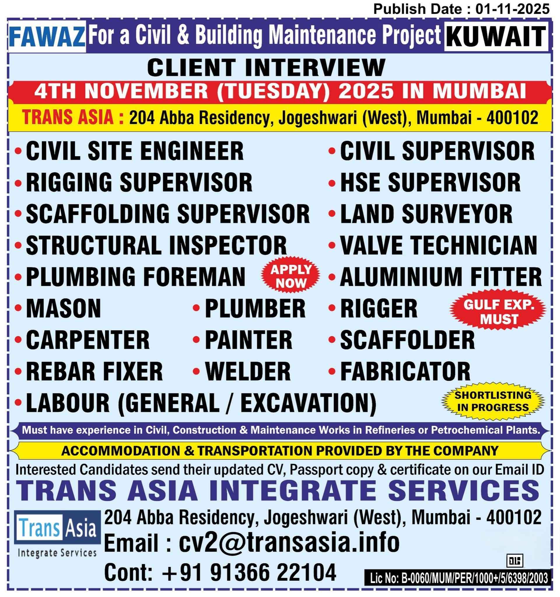 REQUIRED FOR LONG TERM - OIL & GAS CONSTRUCTION PROJECT KUWAIT