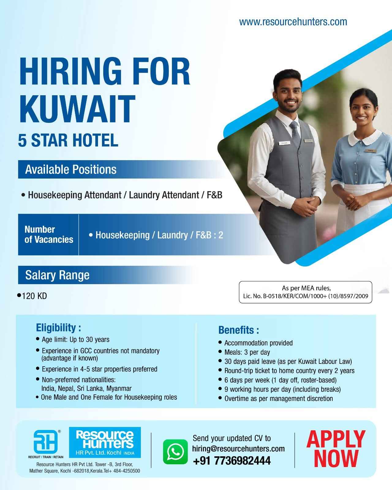 KUWAIT REQUIRED FOR A REPUTED 5 STAR HOTEL