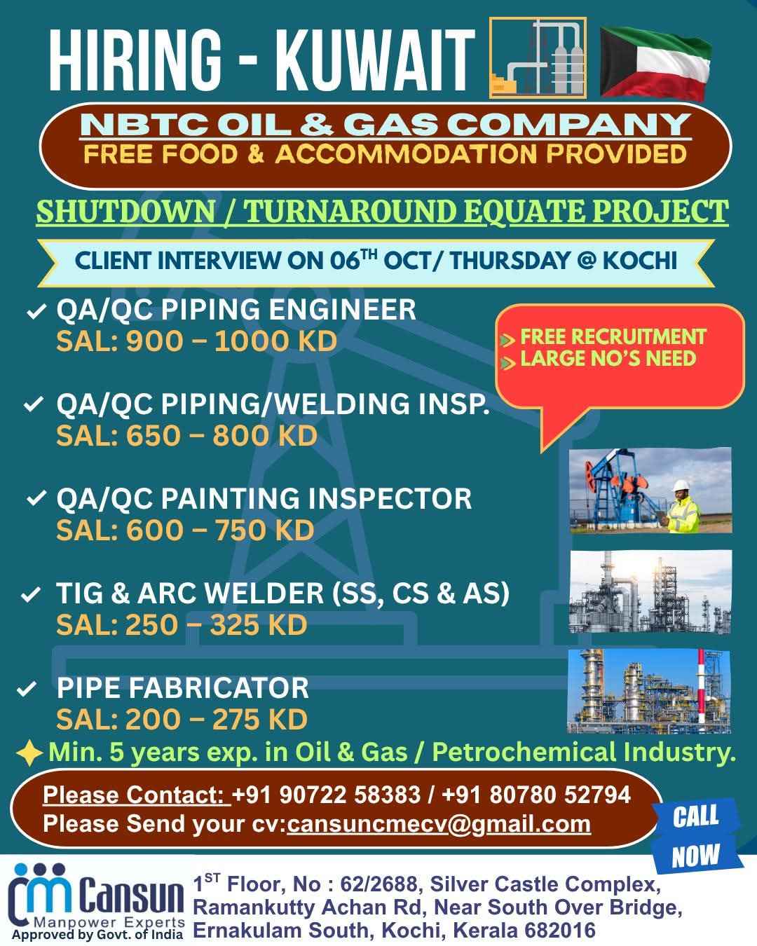 FREE RECRUITMENT KUWAIT - NBTC (EQUATE SHUTDOWN)