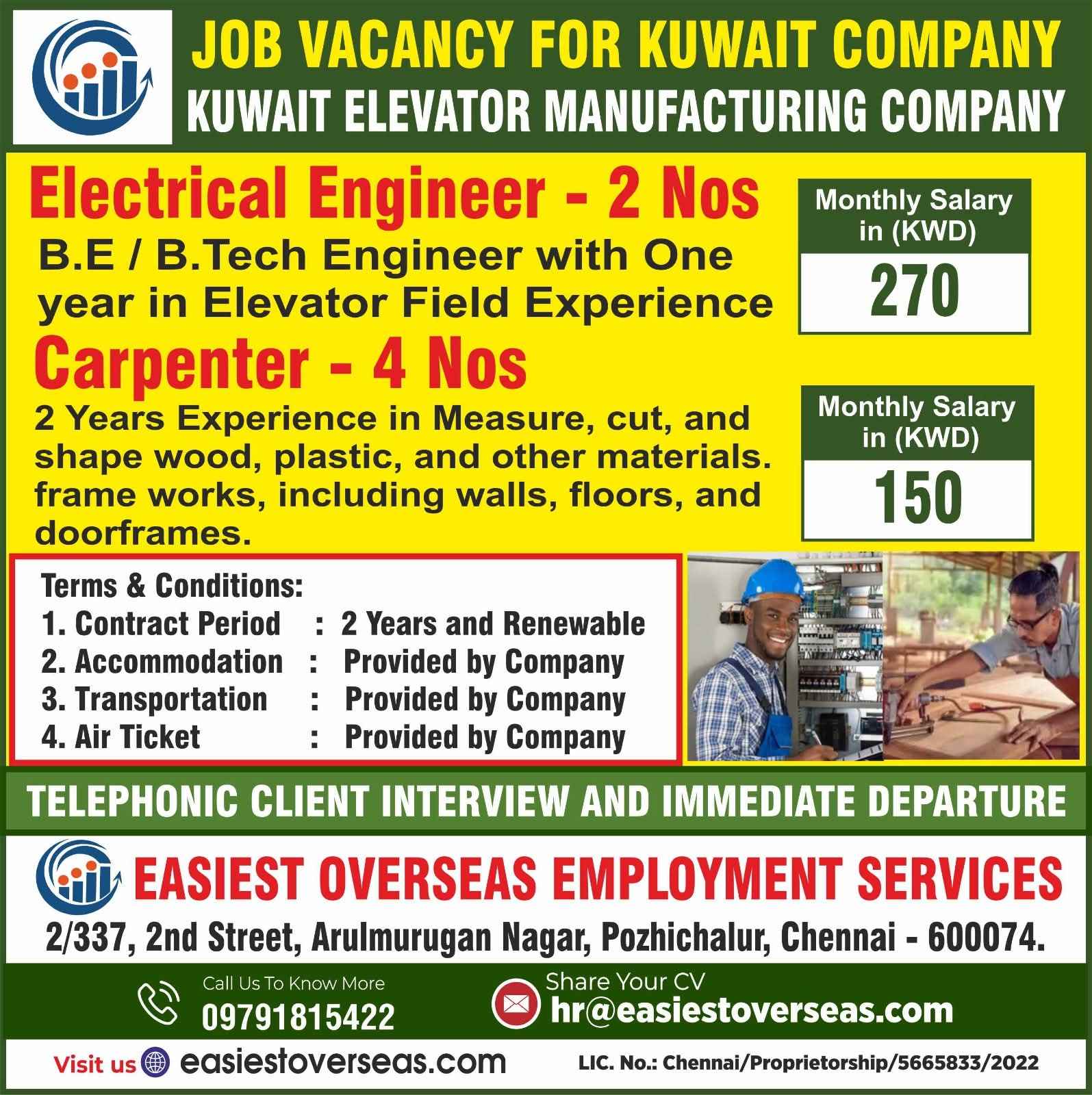 KUWAIT REQUIRED FOR A REPUTED ENGINEERING COMPANY