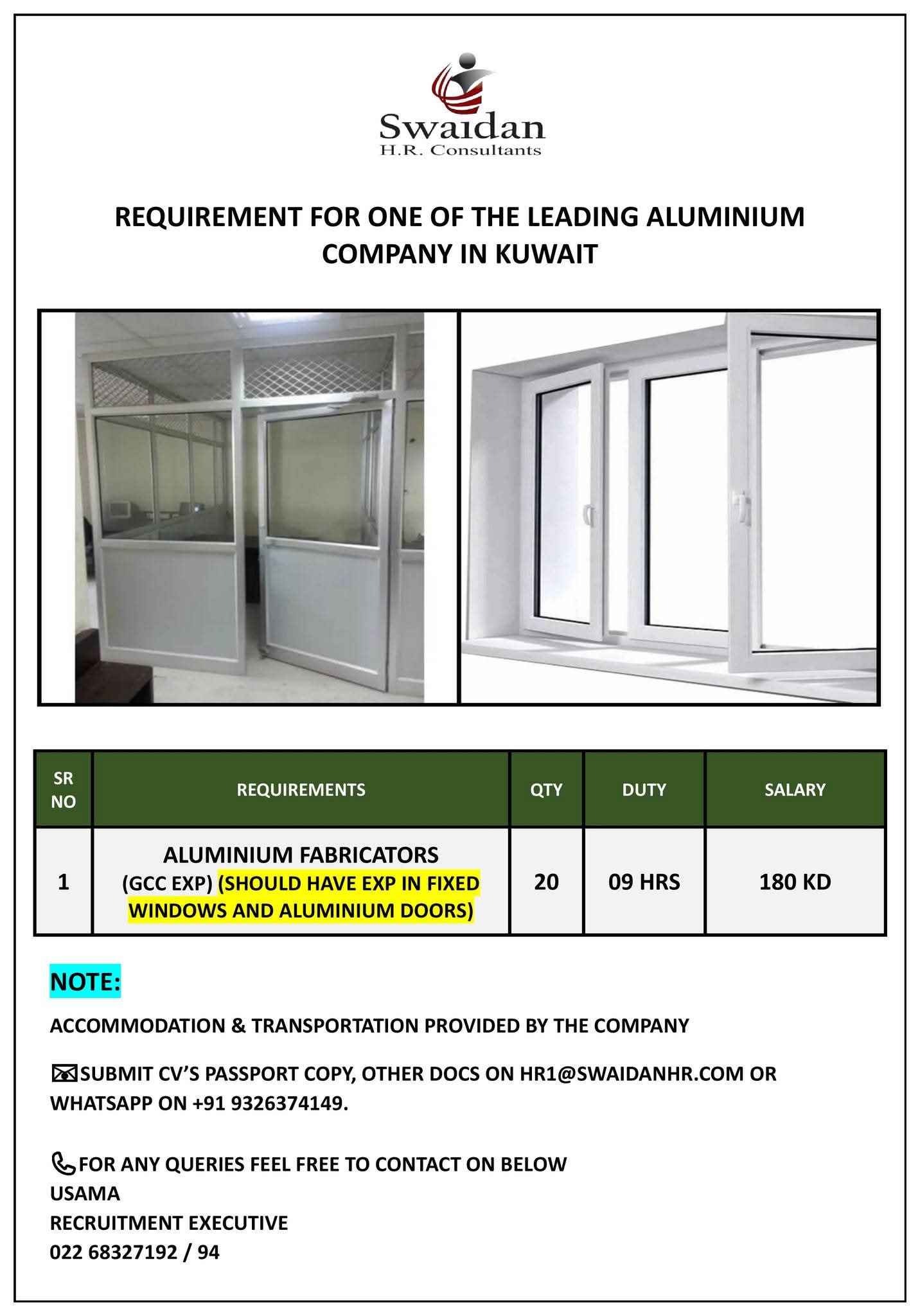 REQUIREMENT FOR ONE OF THE LEADING ALUMINIUM COMPANY IN KUWAIT