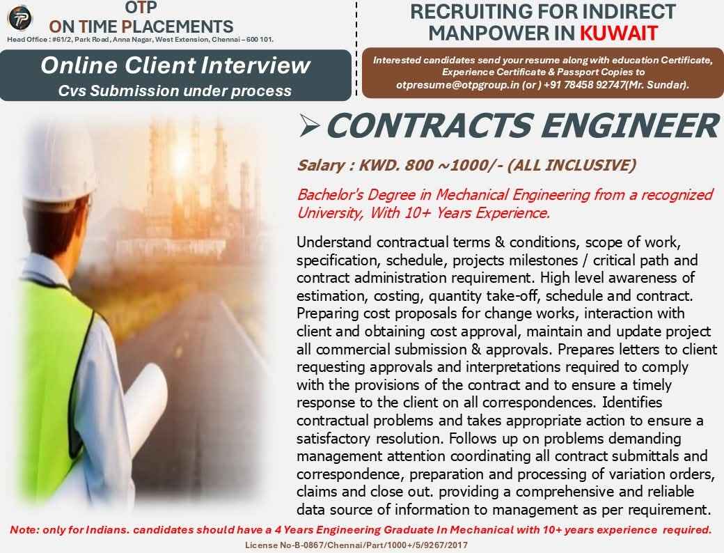 URGENT REQUIREMENT IN TOP EPC CONTRACTING COMPANY CO IN KUWAIT