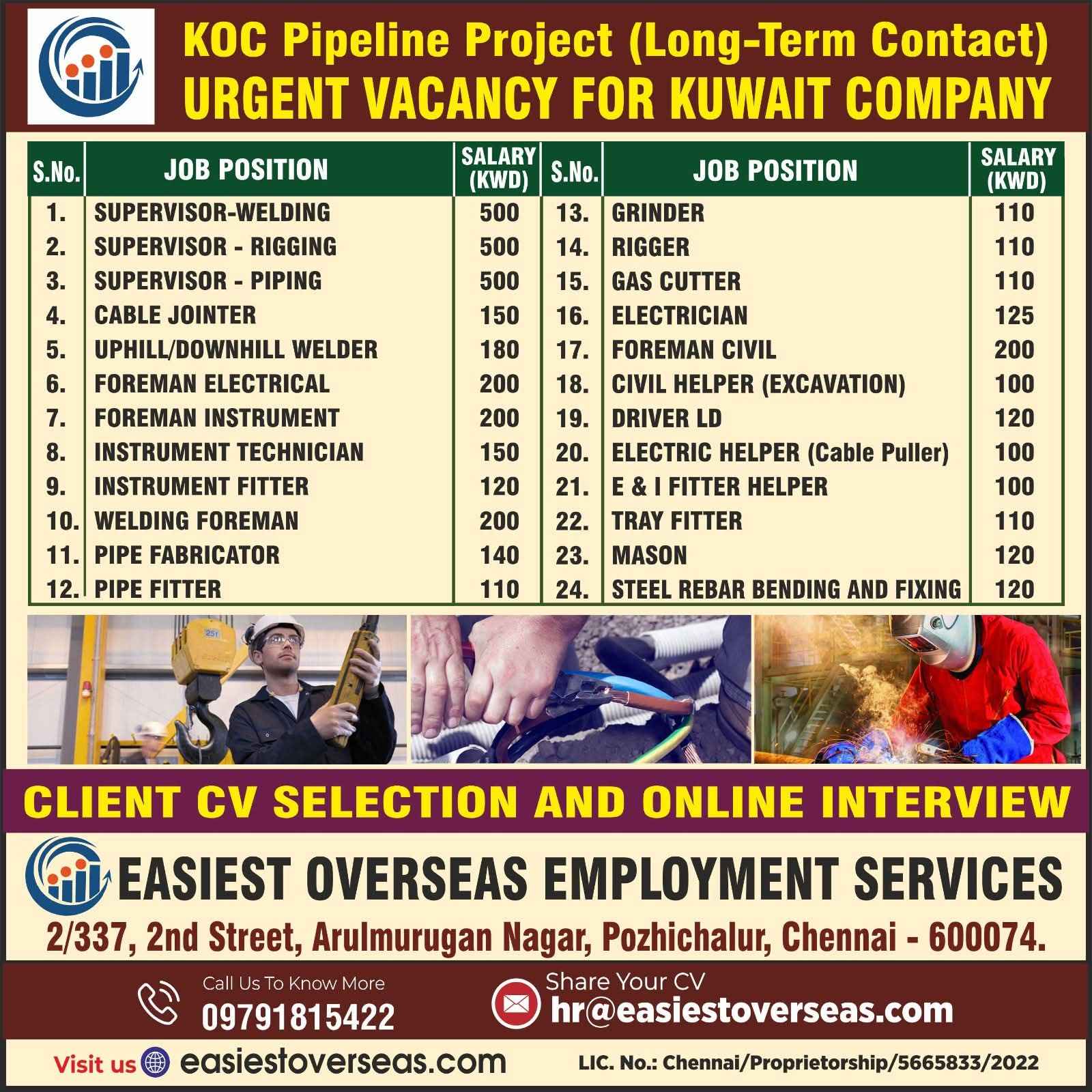 JOB VACANCY FOR KUWAIT COMPANY