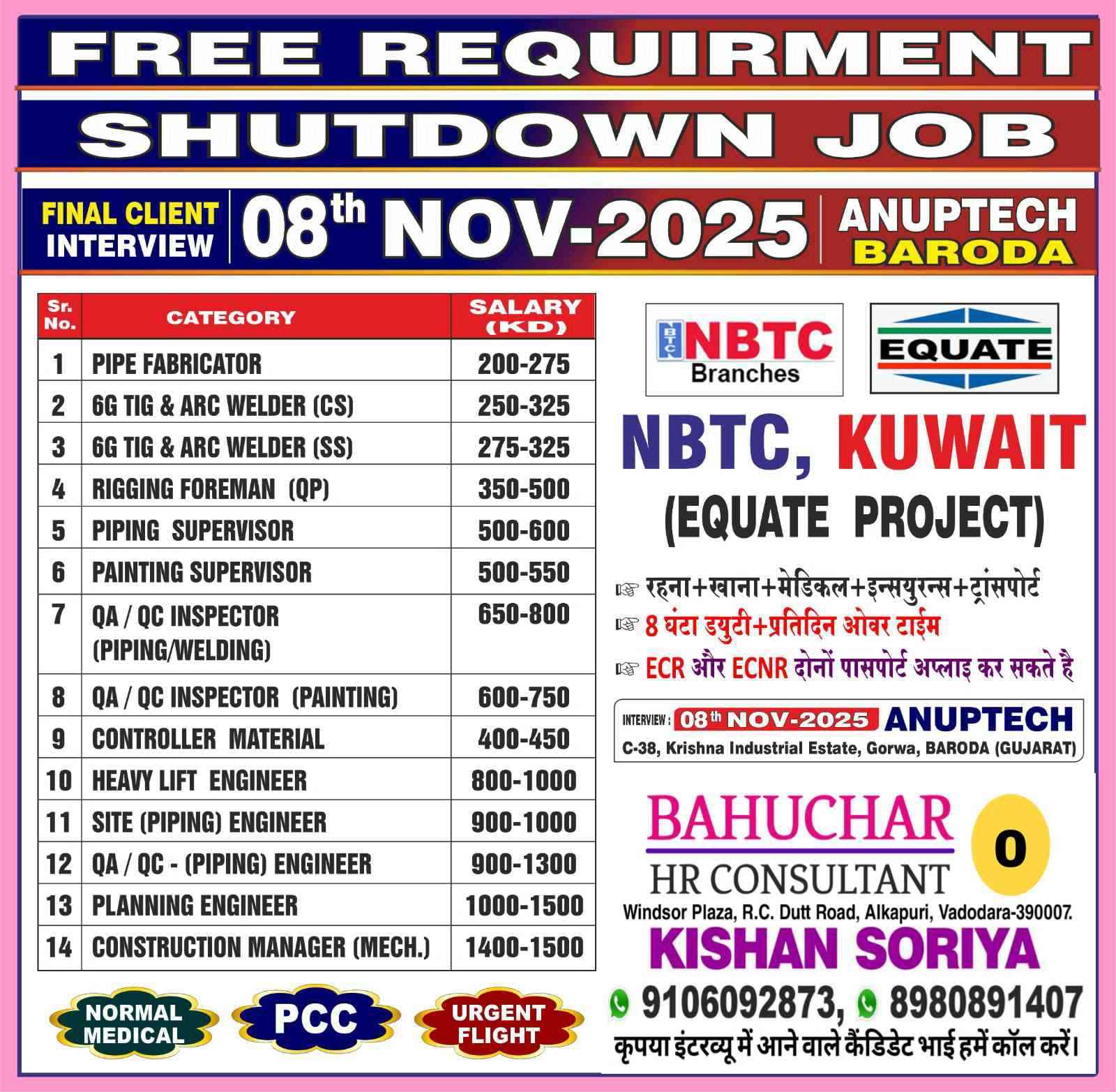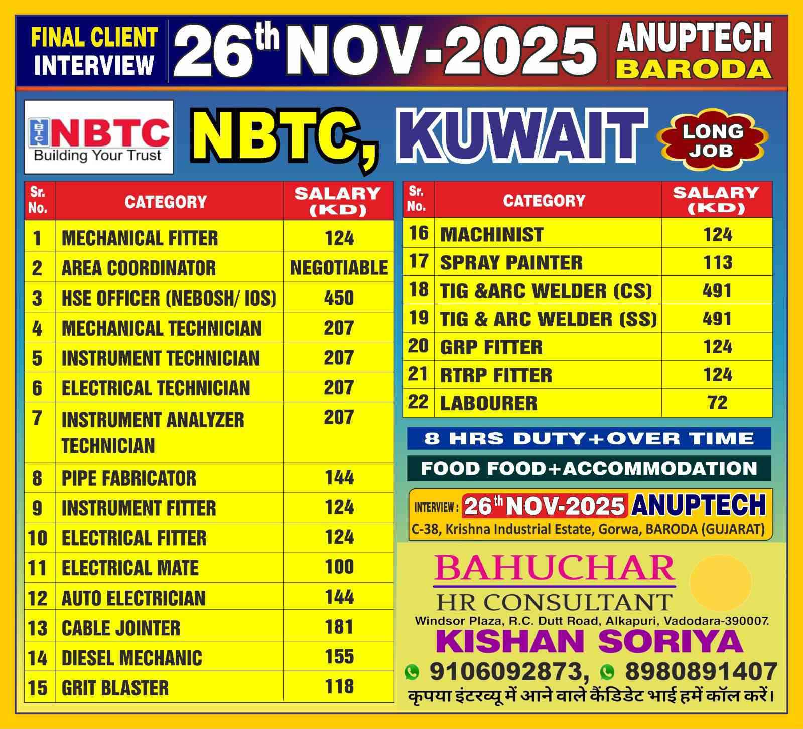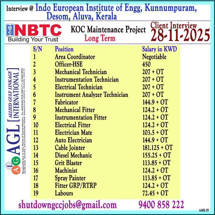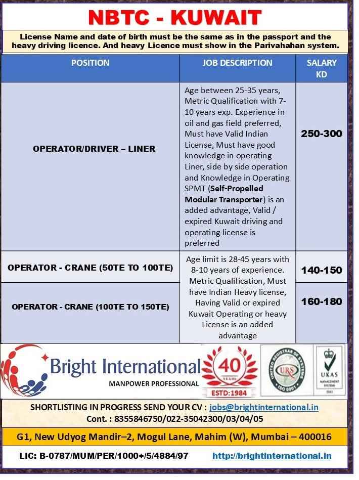 Urgent Requirement For NBTC, KUWAIT
