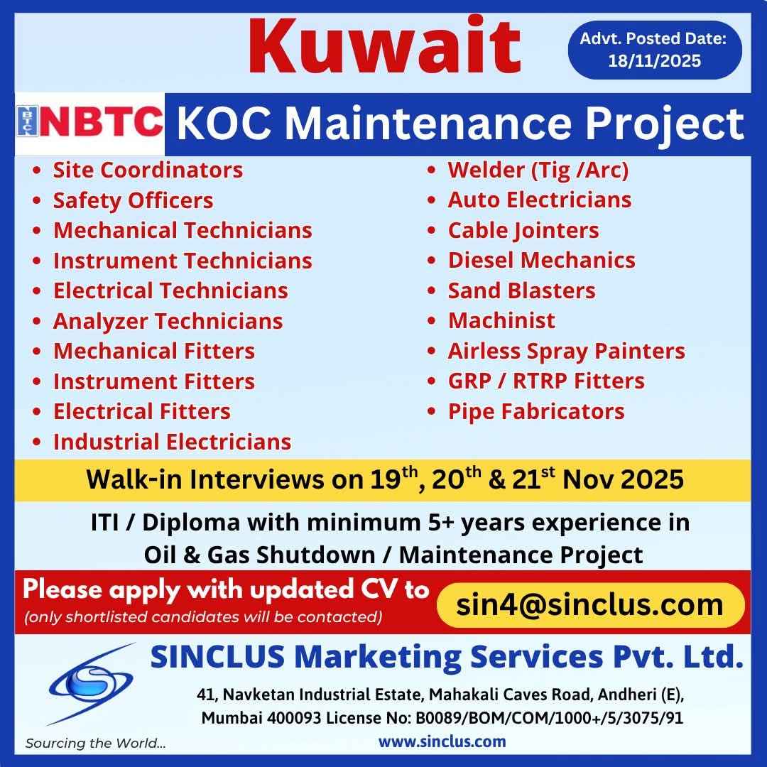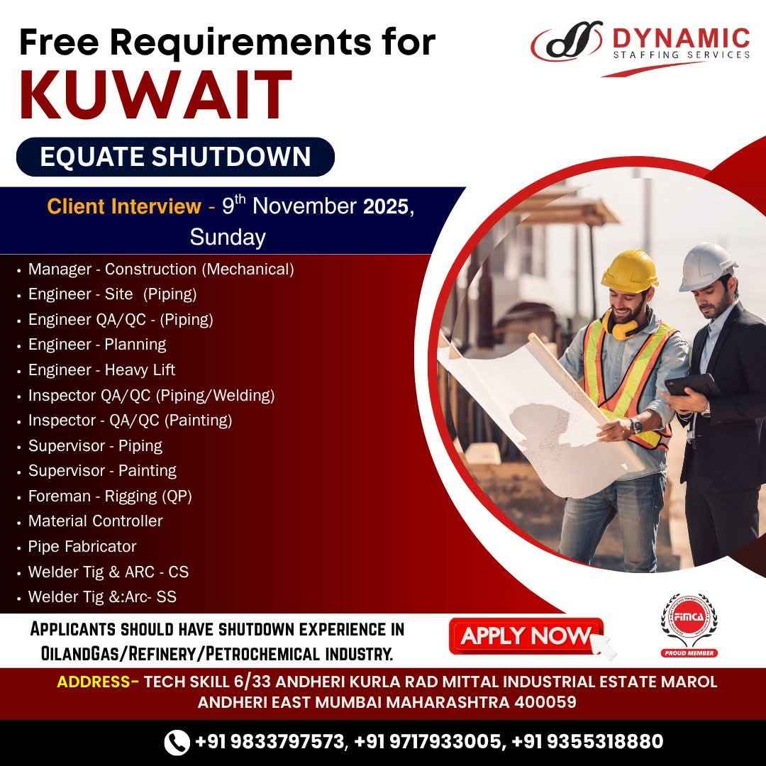 Urgently Required for GS - KOC Maintenance in Kuwait