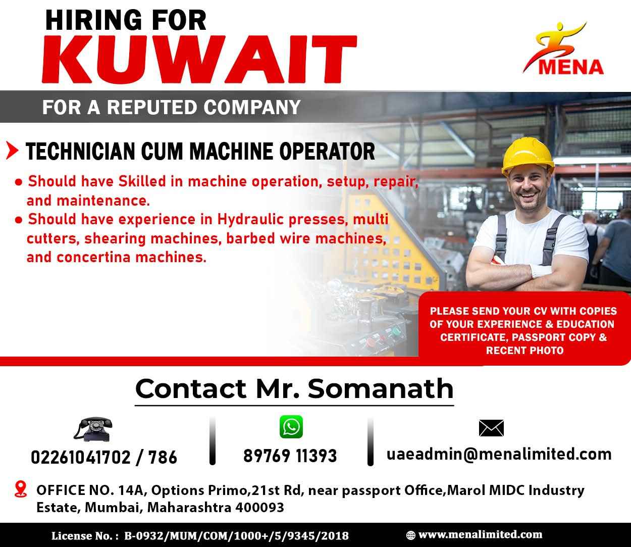 Urgent Requirement For MECC MECHANICAL KUWAIT