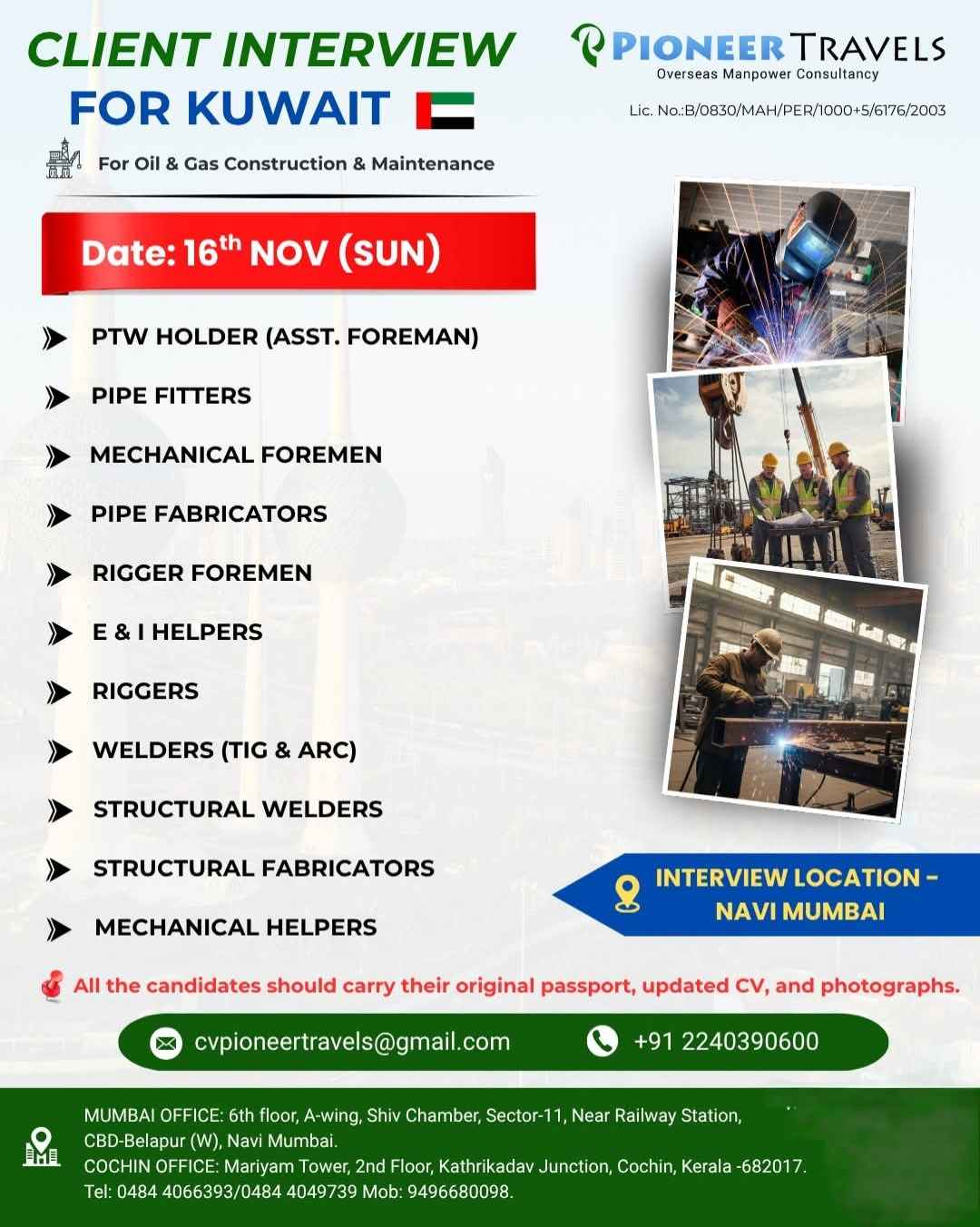 REQUIRED FOR OIL & GAS CONSTRUCTION PROJECT KUWAIT