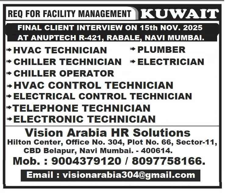 URGENTLY REQUIREMENT FOR FACILITY MANAGEMENT KUWAIT