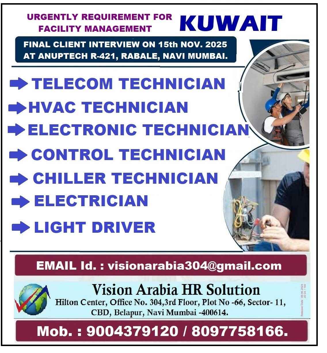 URGENT VACANCY FOR KUWAIT COMPANY