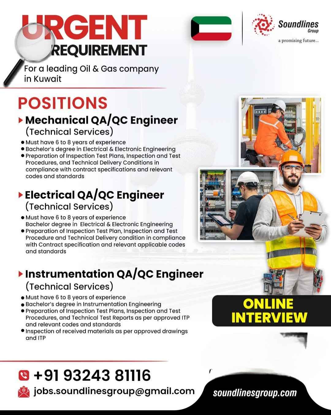 URGENT REQUIREMENT For a leading Oil & Gas company in Kuwait