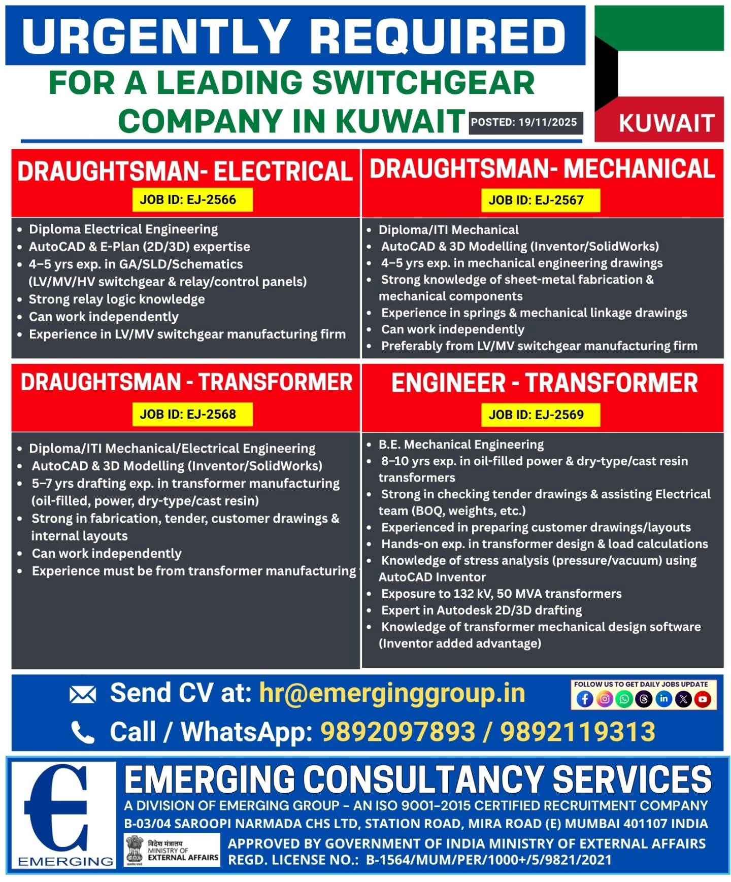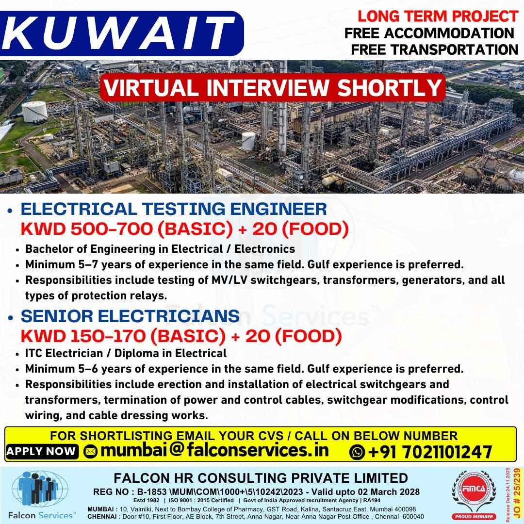 URGENTLY REQUIRED FOR A LEADING SWITCHGEAR COMPANY IN KUWAIT