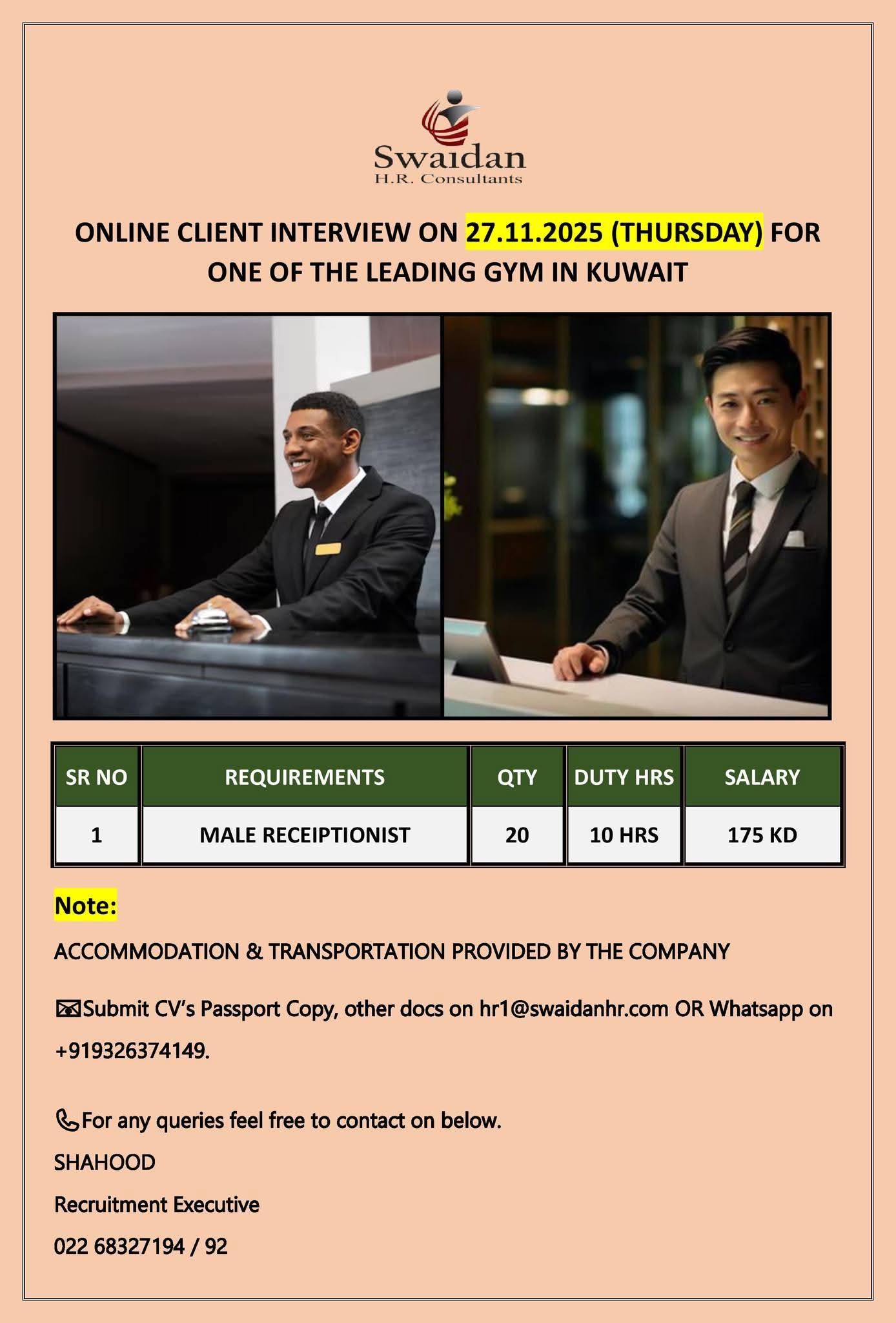 INTERVIEW DATED 28TH JULY 2025 Recruitment for KUWAIT