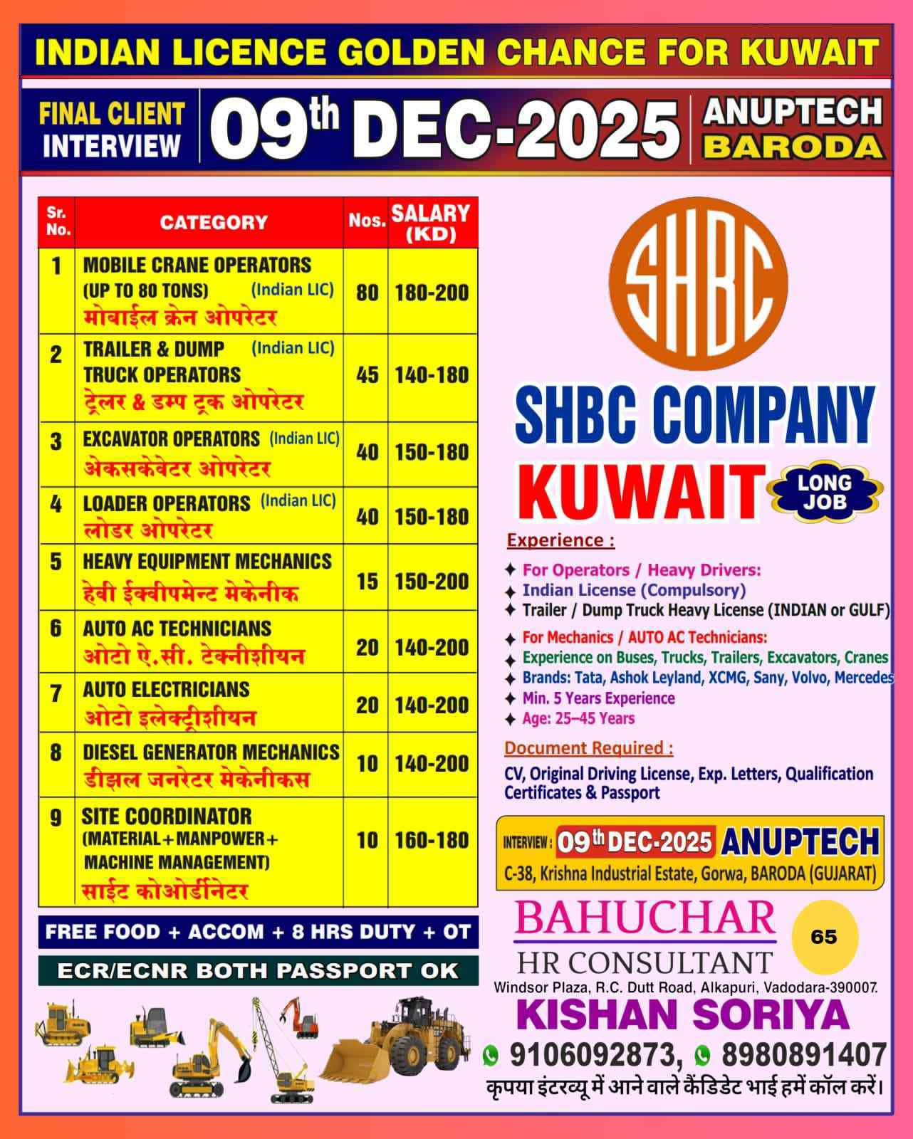 Urgent Requirement For SHBC COMPANY KUWAIT