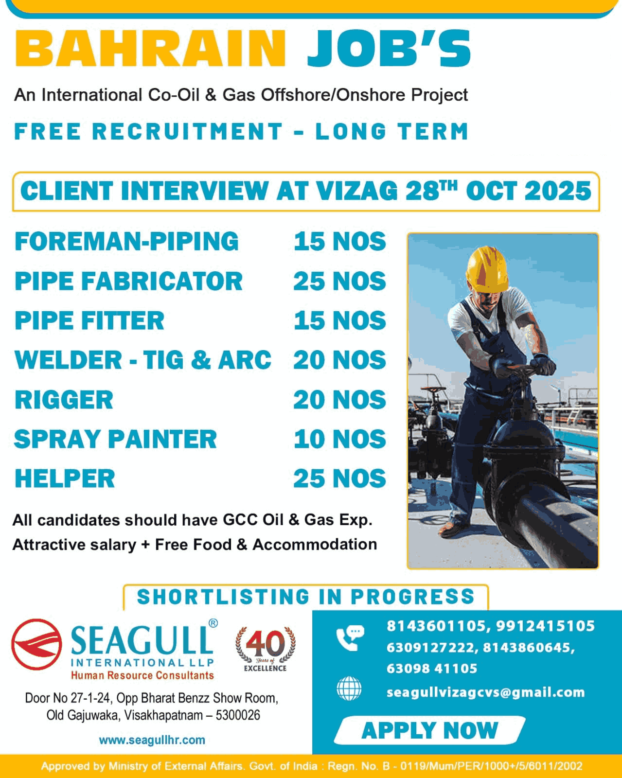 URGENT REQUIREMENT OIL & GAS CONSTRUCTION MAINTENANCE PROJECT -BAHRAIN