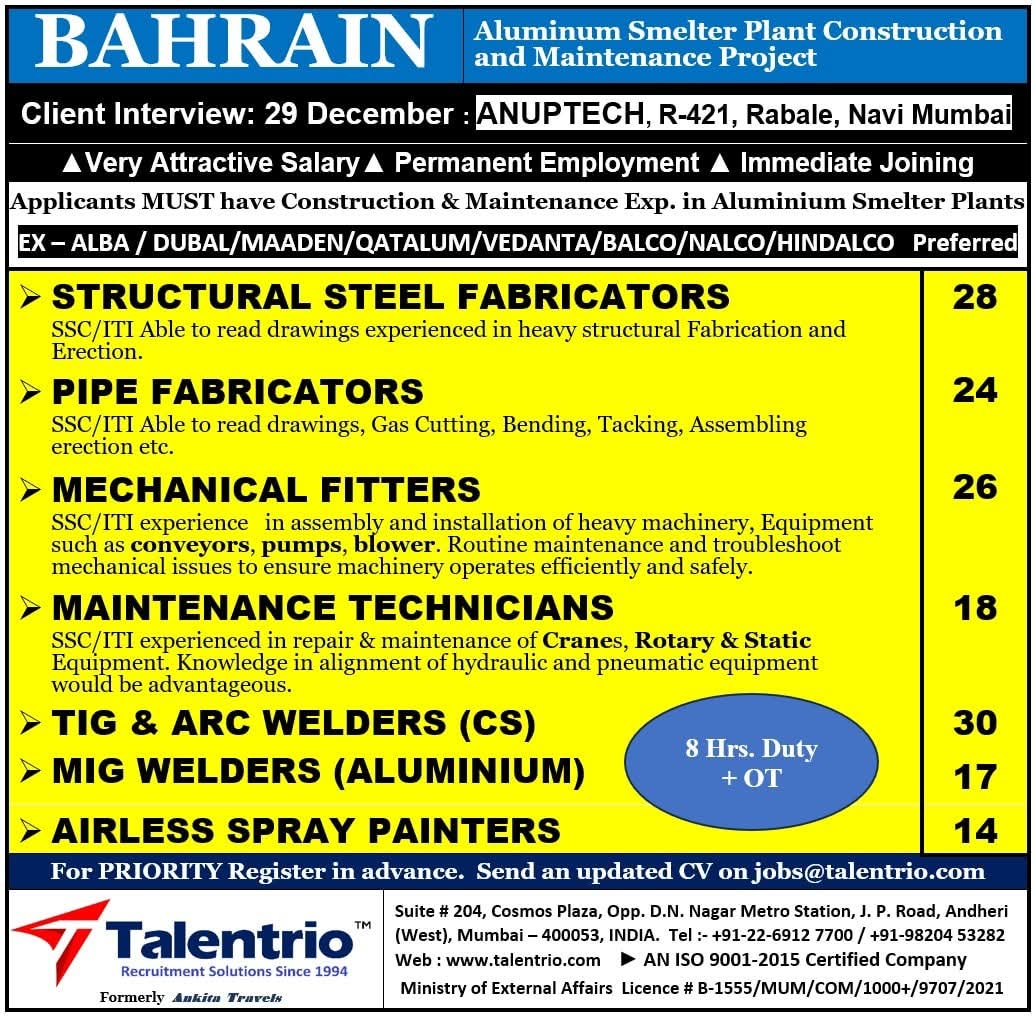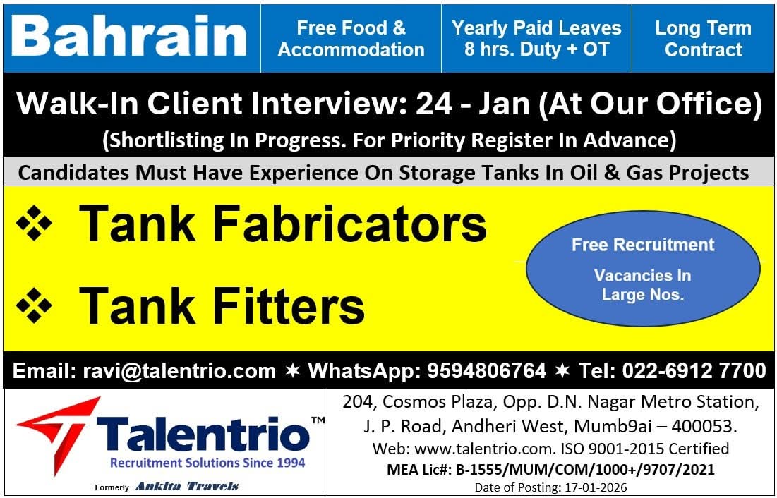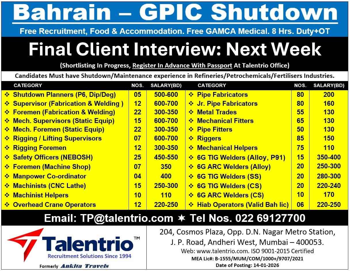 Urgent Requirement For Bahrain – GPIC Shutdown