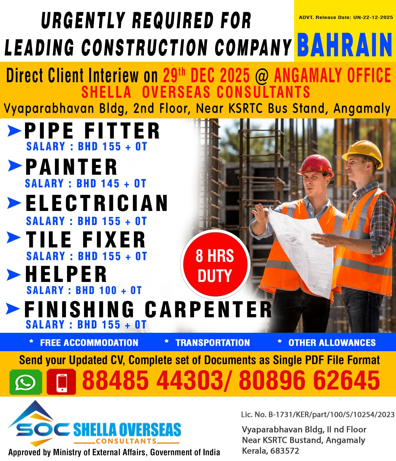 Urgent Hiring for Poullaldes Construction Co. WLL BAHRAIN