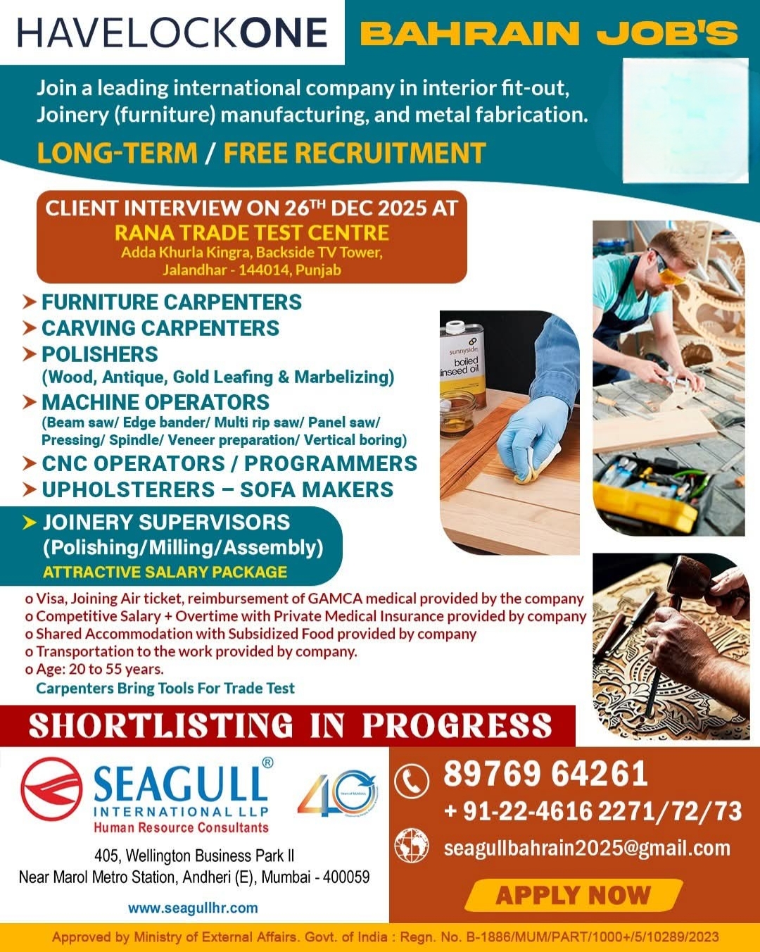 BAHRAIN JOB'S Join a leading international company in interior fit-out, Joinery (furniture) manufacturing, and metal fabrication