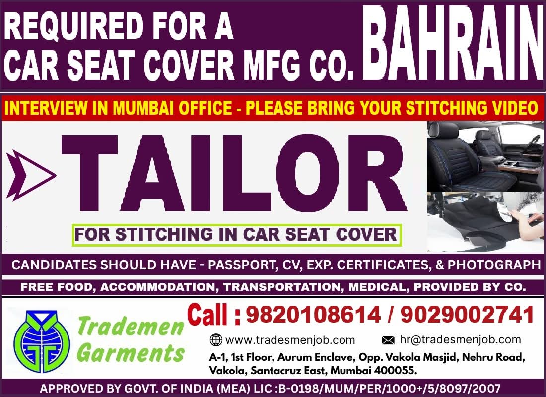 URGENTLY REQUIRED FOR BAHRAIN
