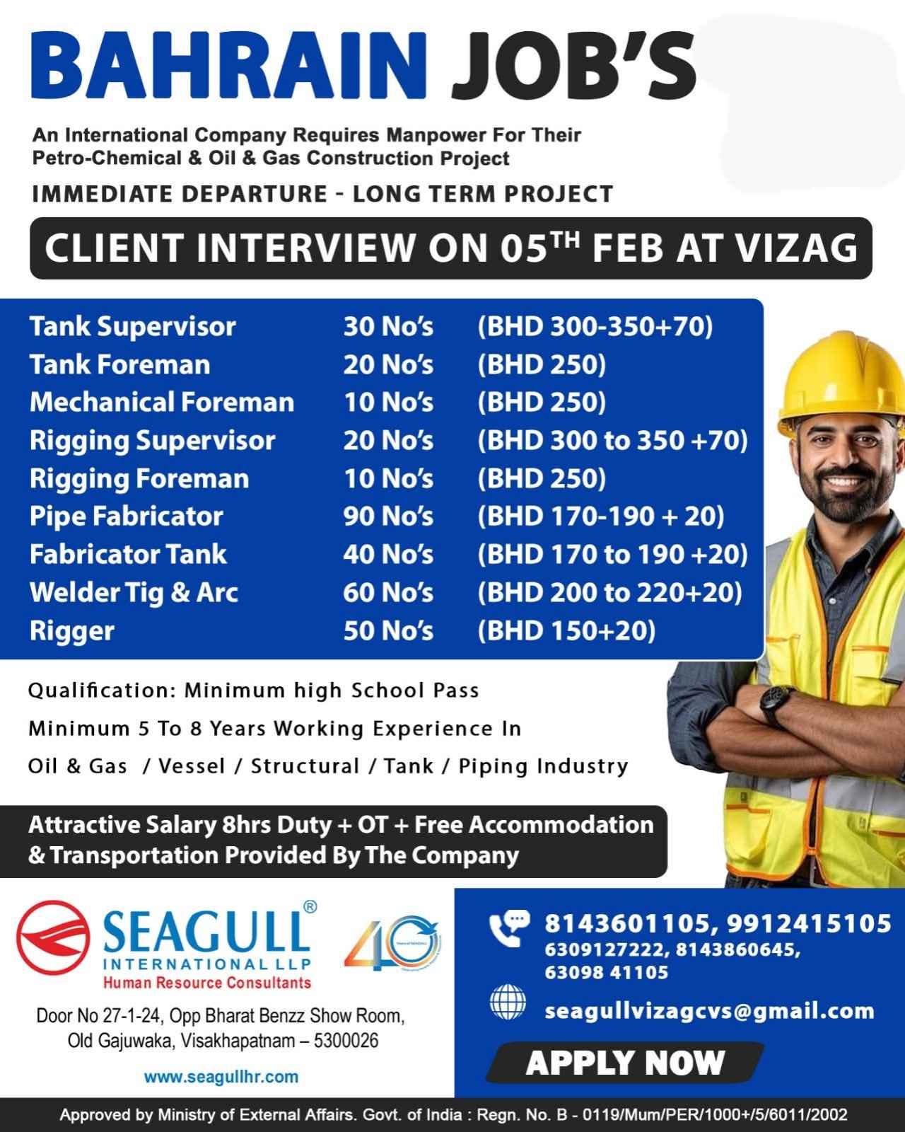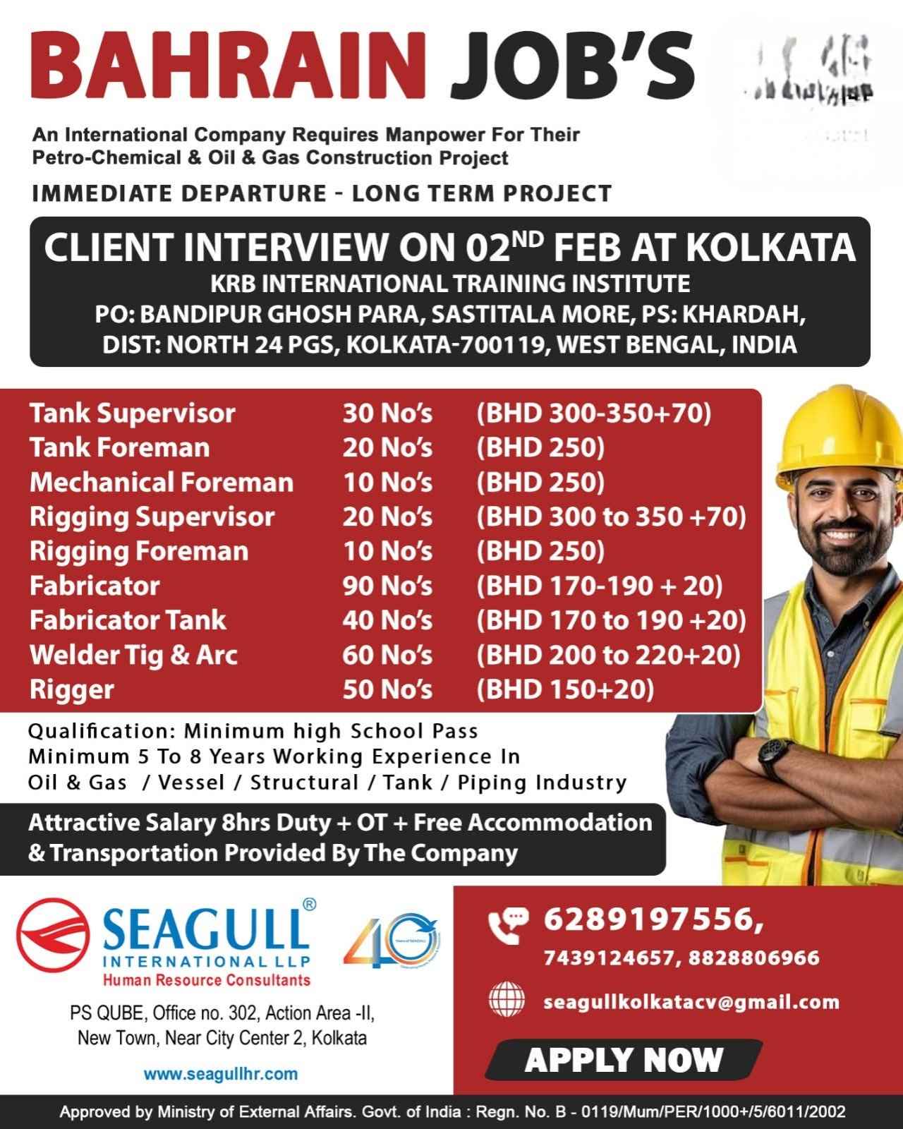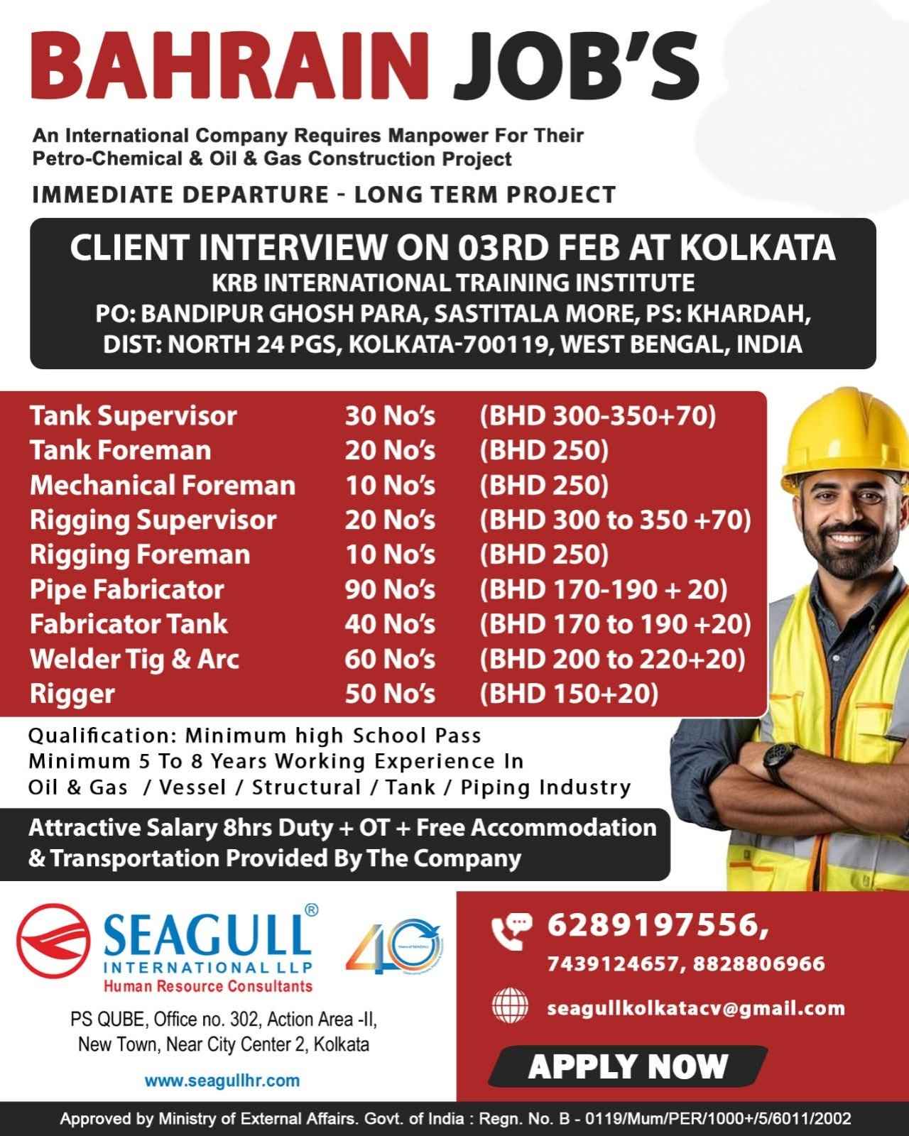 URGENTLY REQUIRED FOR A LEADING COMPANY FOR THEIR LONG-TERM PROJECT IN BAHRAIN