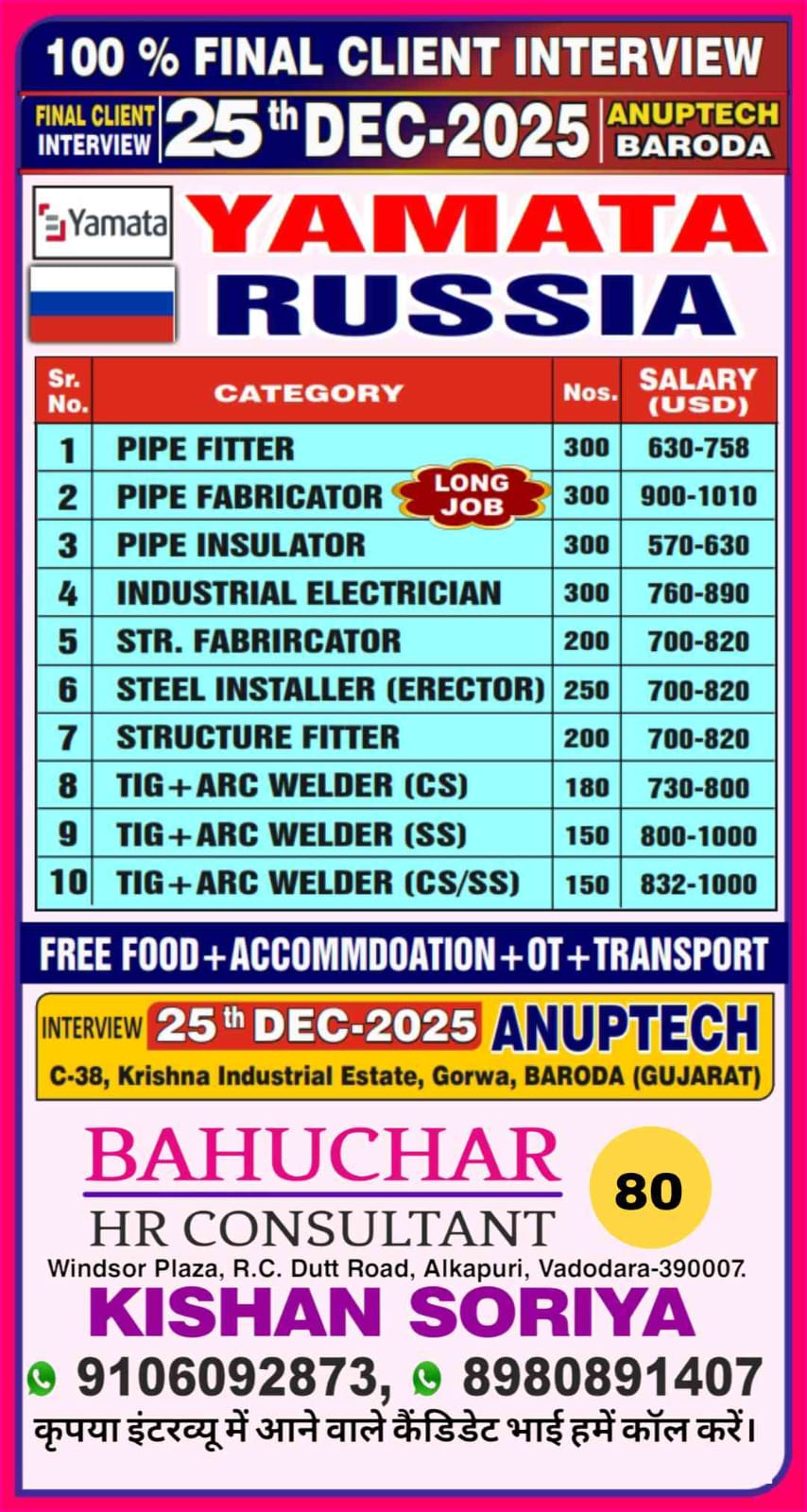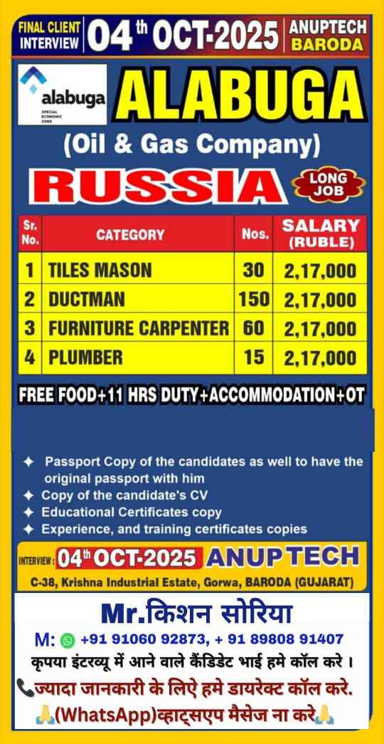 URGENT REQUIREMENT ALABUGA (Oil & Gas Company) RUSSIA