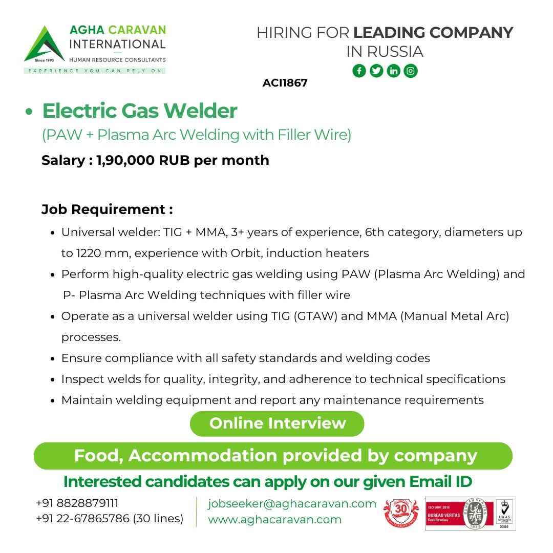 HIRING FOR LEADING COMPANY IN RUSSIA