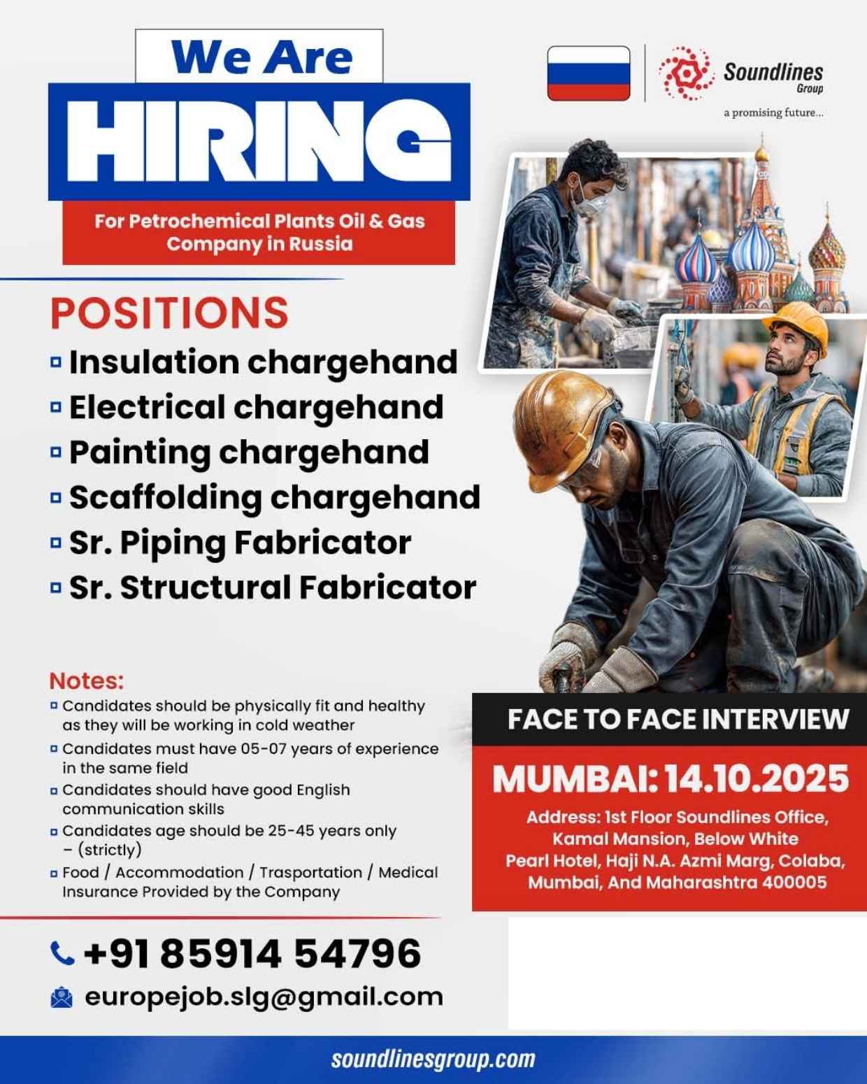 WE ARE HIRING Soundlines Group a promising future... For VELESSTROY (Oil & Gas) - Russia