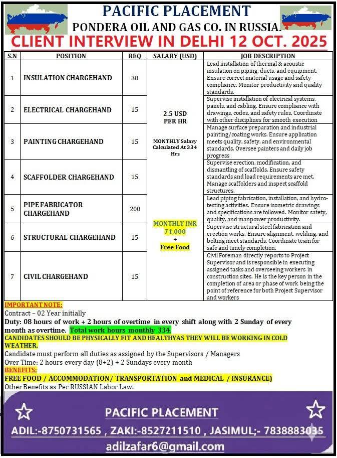 RUSSIA JOB'S Oil & Gas Pipe Line / Flow Line Project