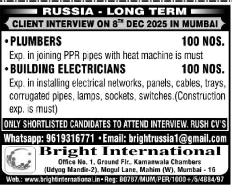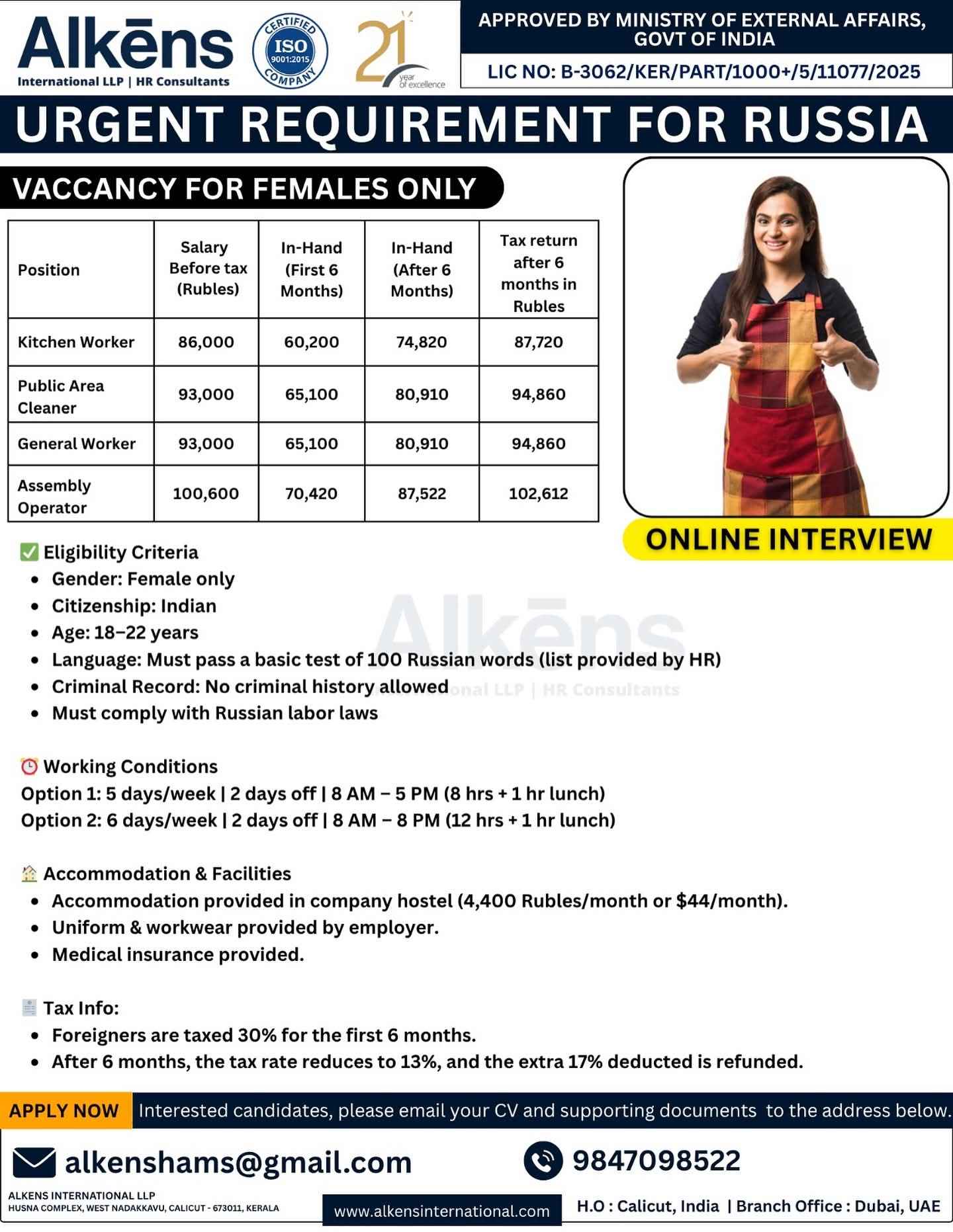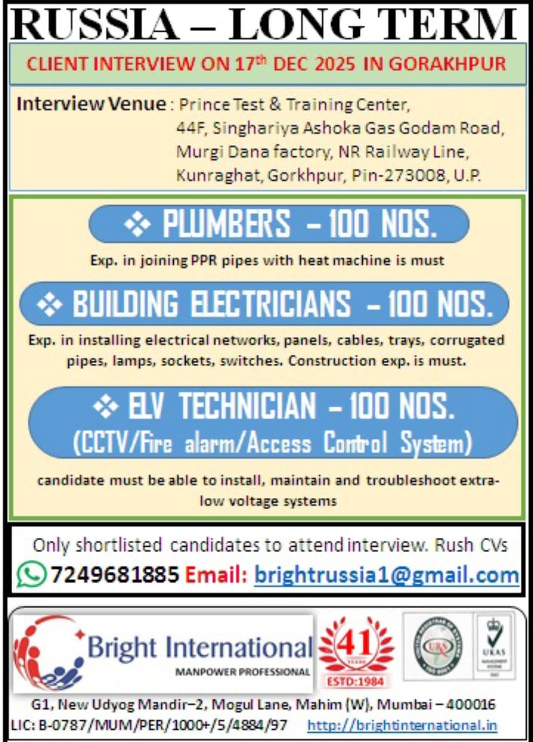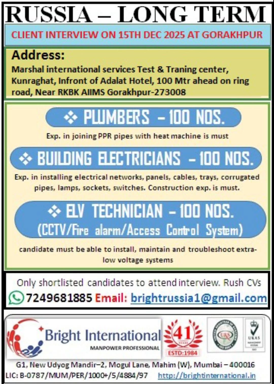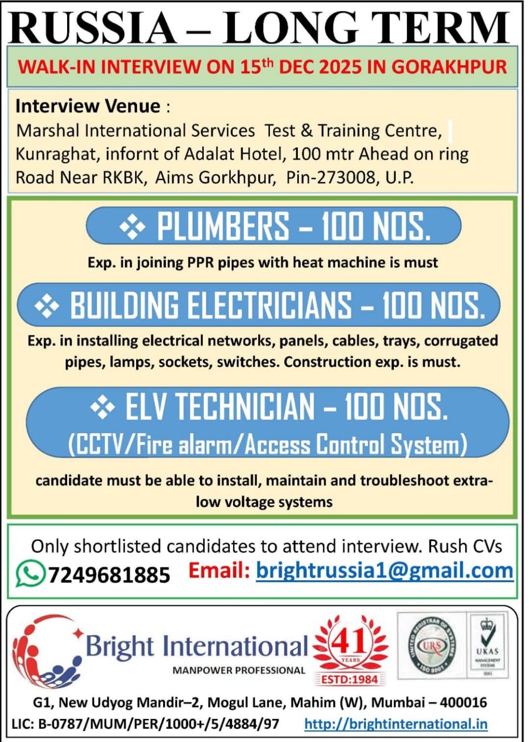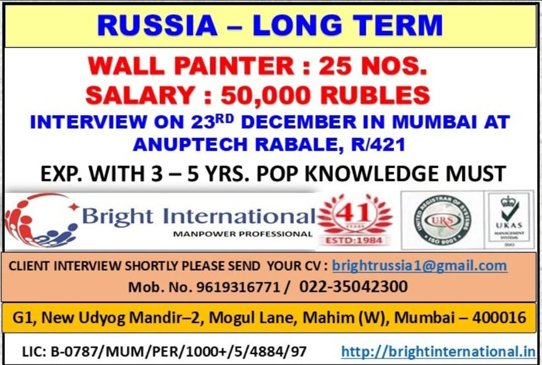 URGENT REQUIREMENT MNC COMPANY RUSSIA