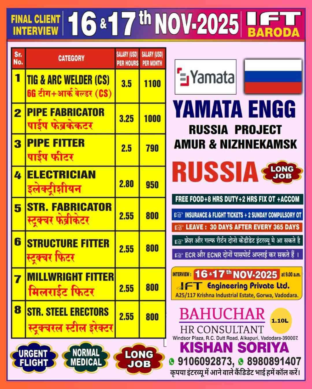 URGENT REQUIREMENT FOR RUSSIA - OIL & GAS PROJECT