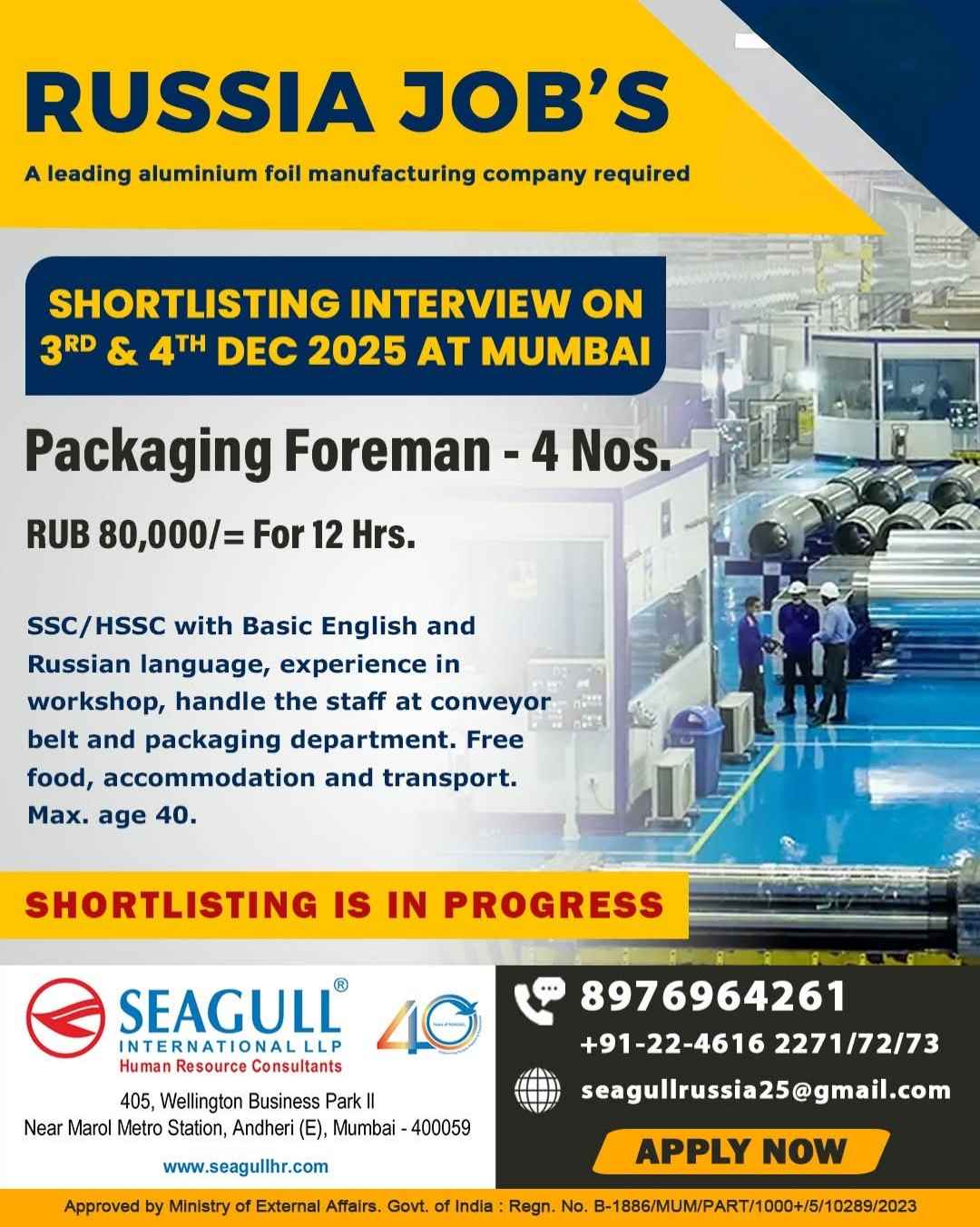 RUSSIA JOB'S A leading aluminium foil manufacturing company required