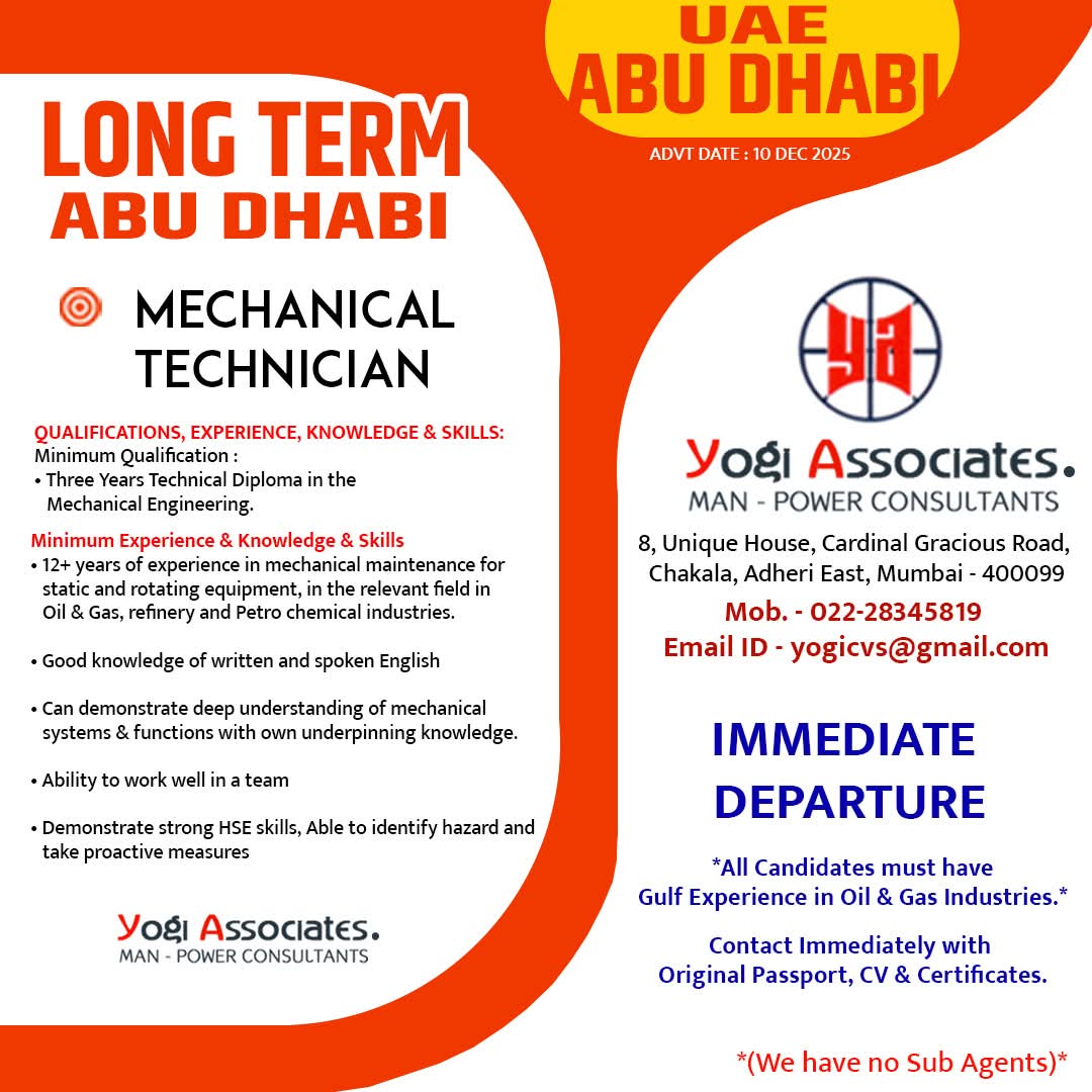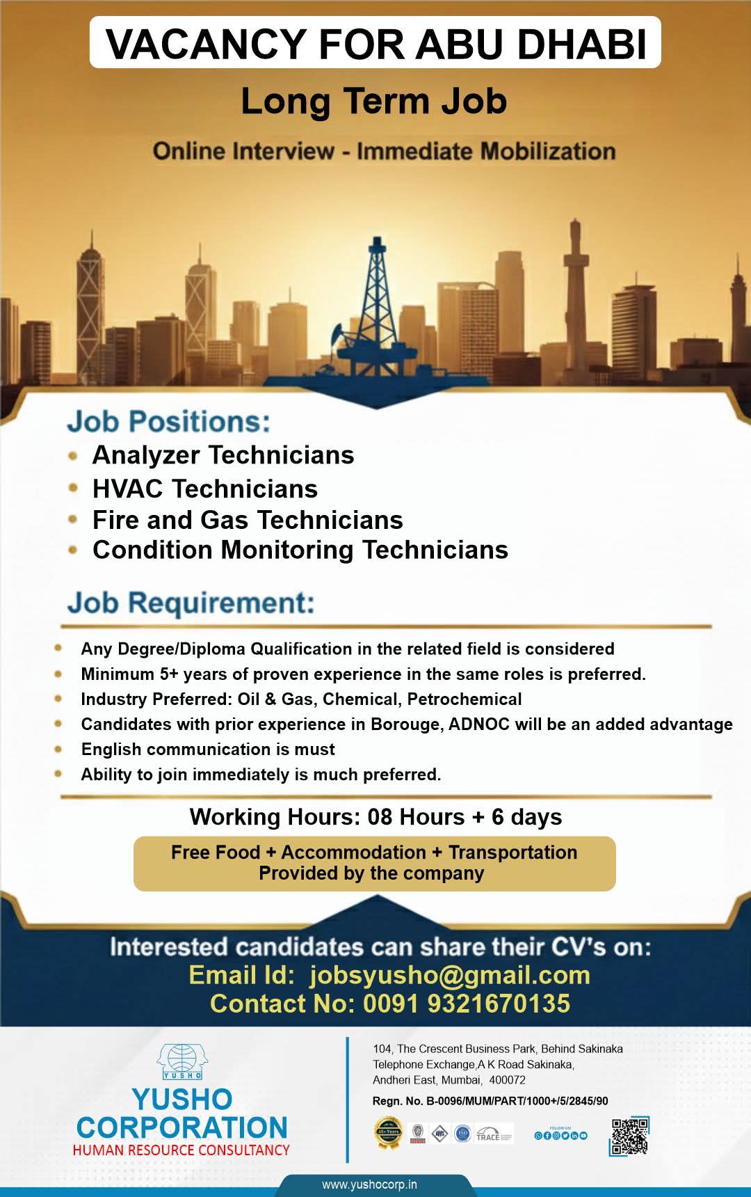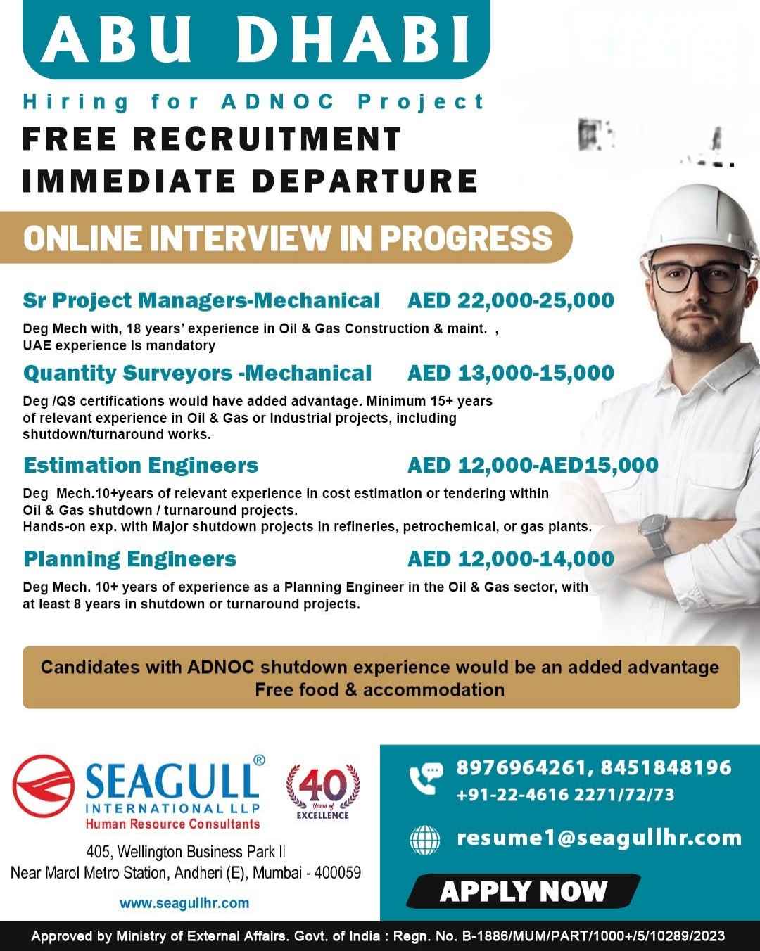 URGENT REQUIREMENT ADNOC PROJECT ABUDHABI