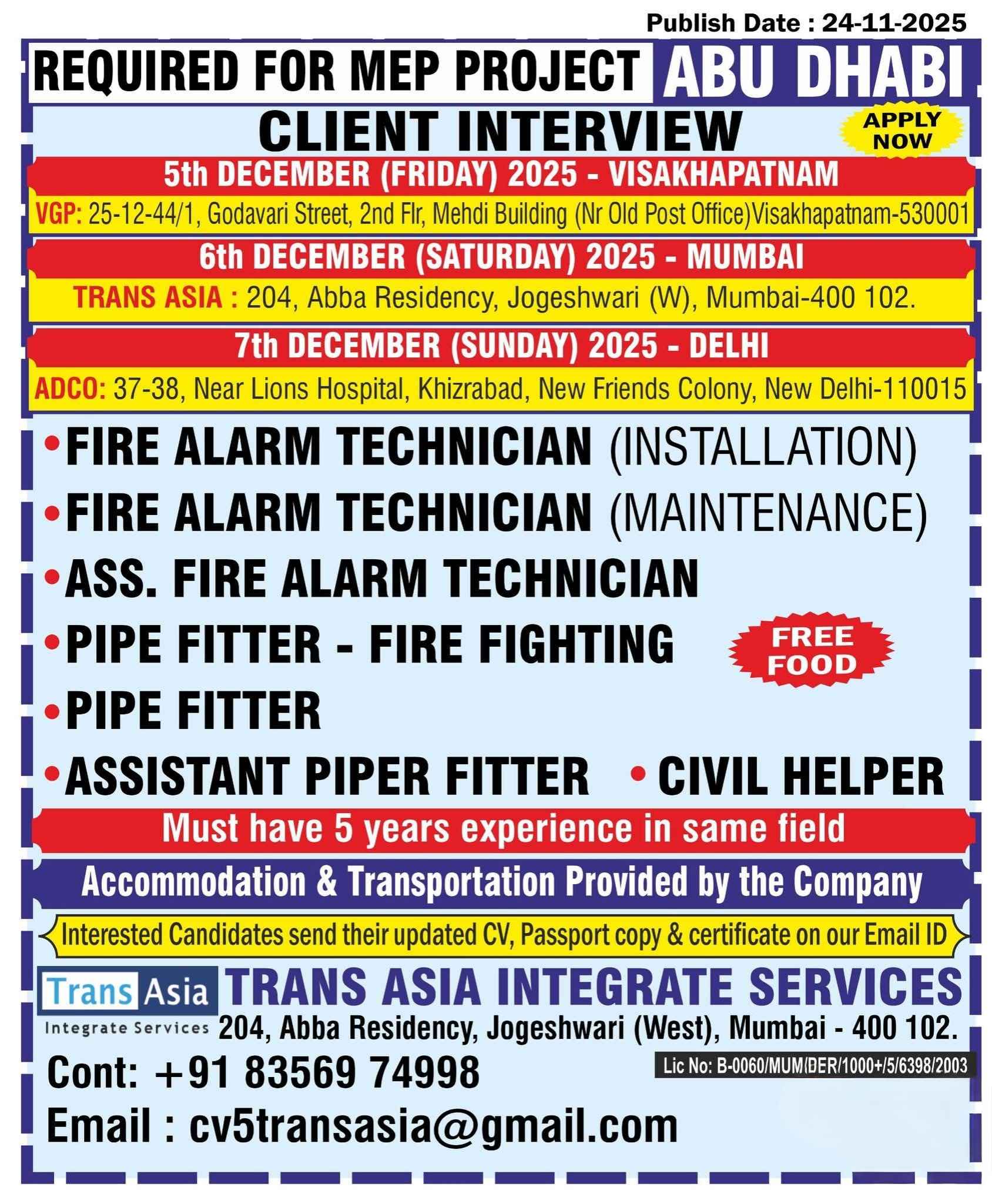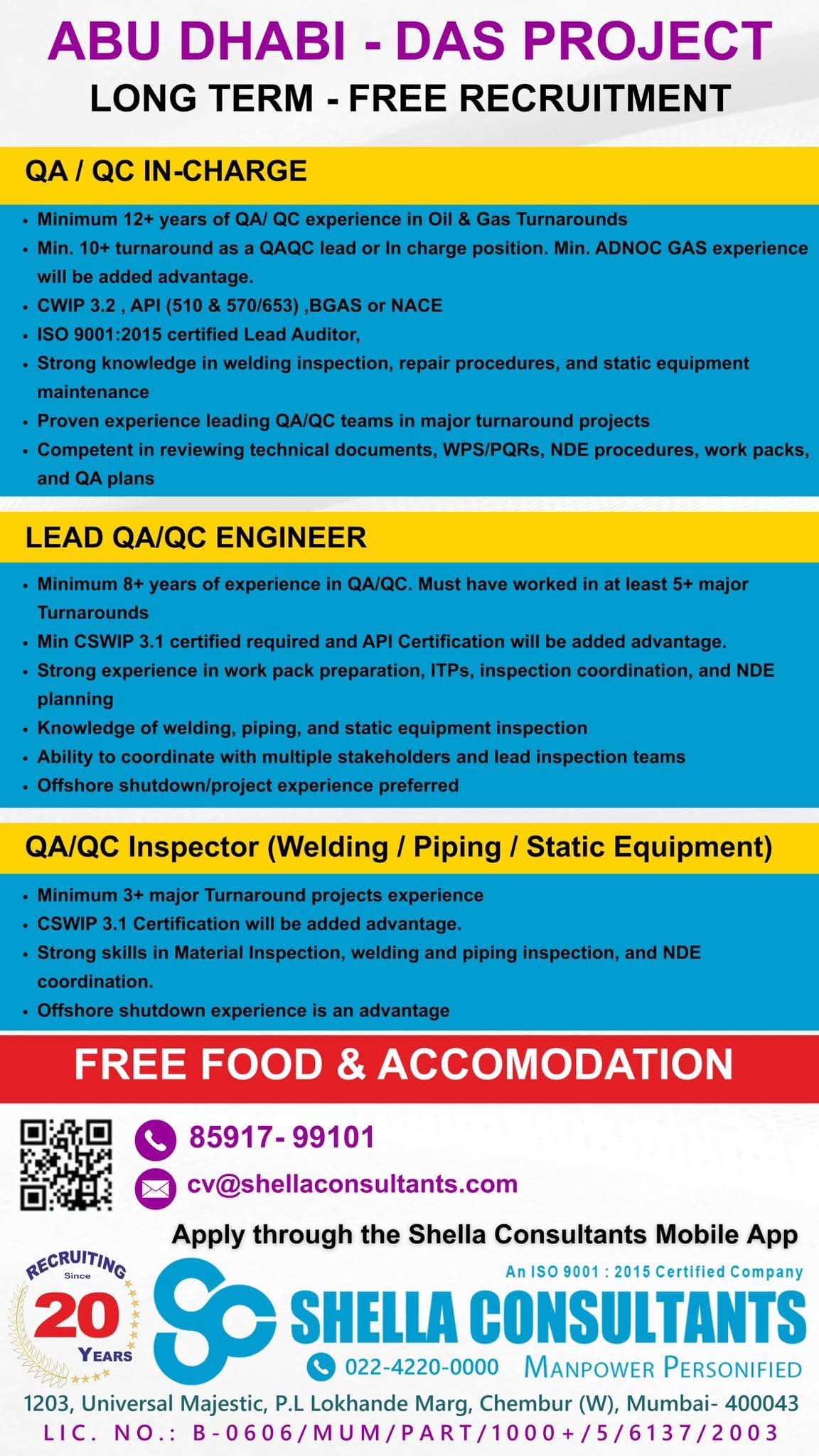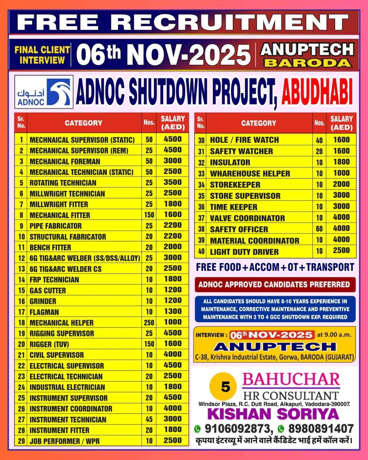 ABU DHABI SHUTDOWN PROJECT - FREE RECRUITMENT