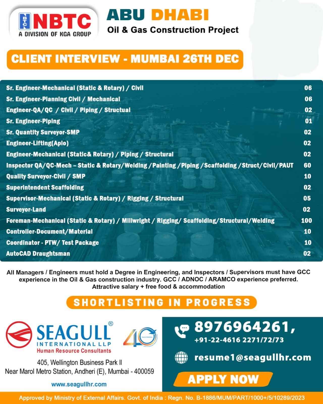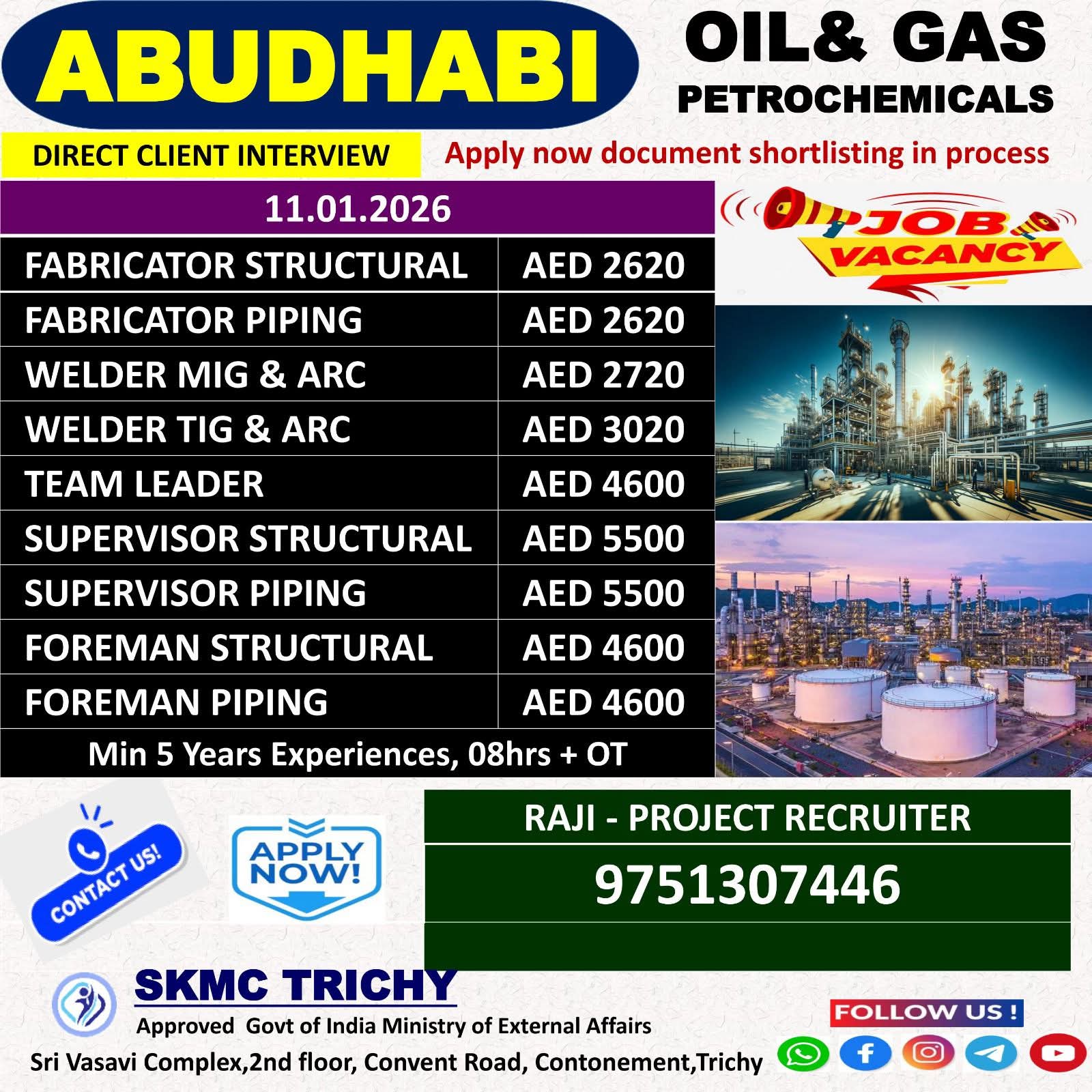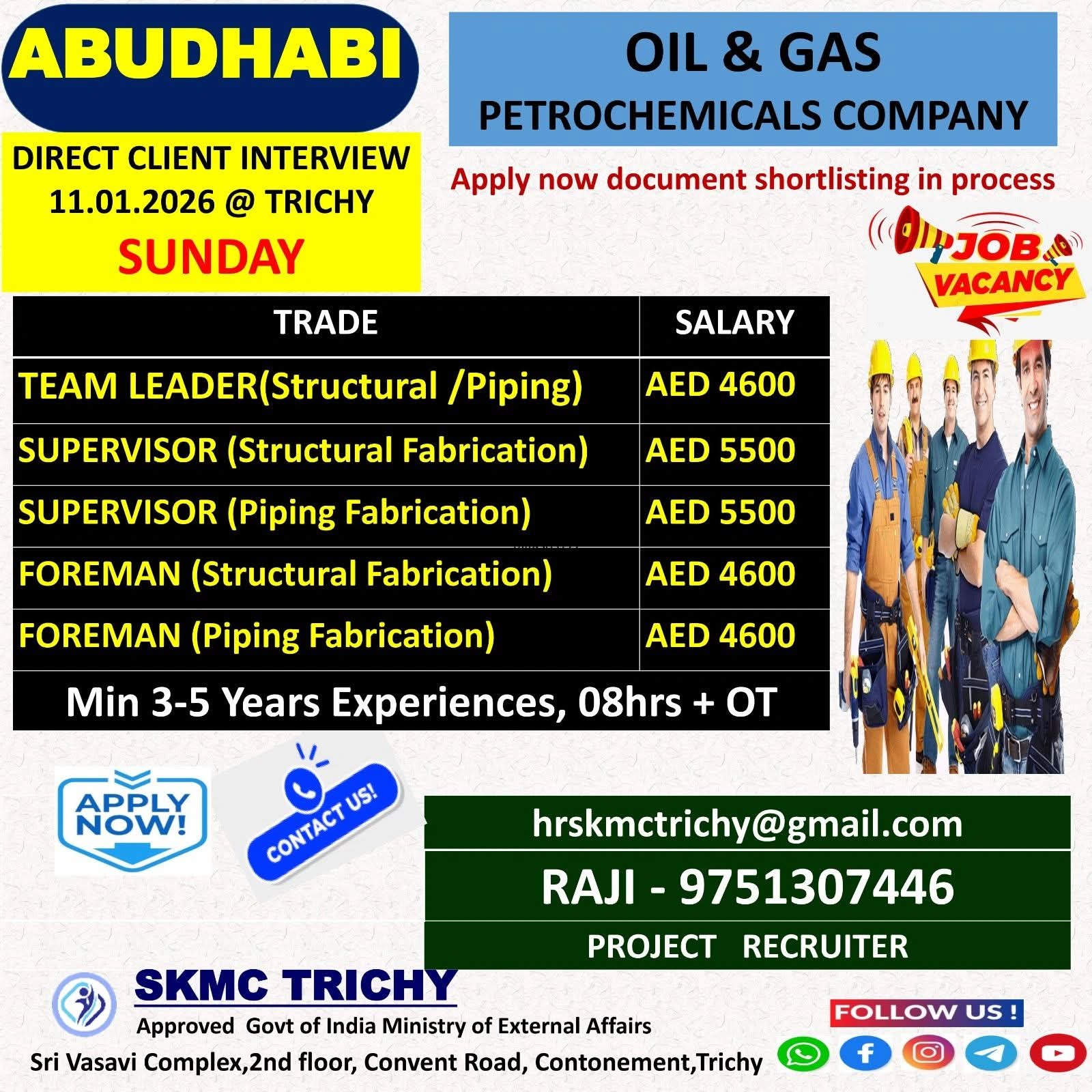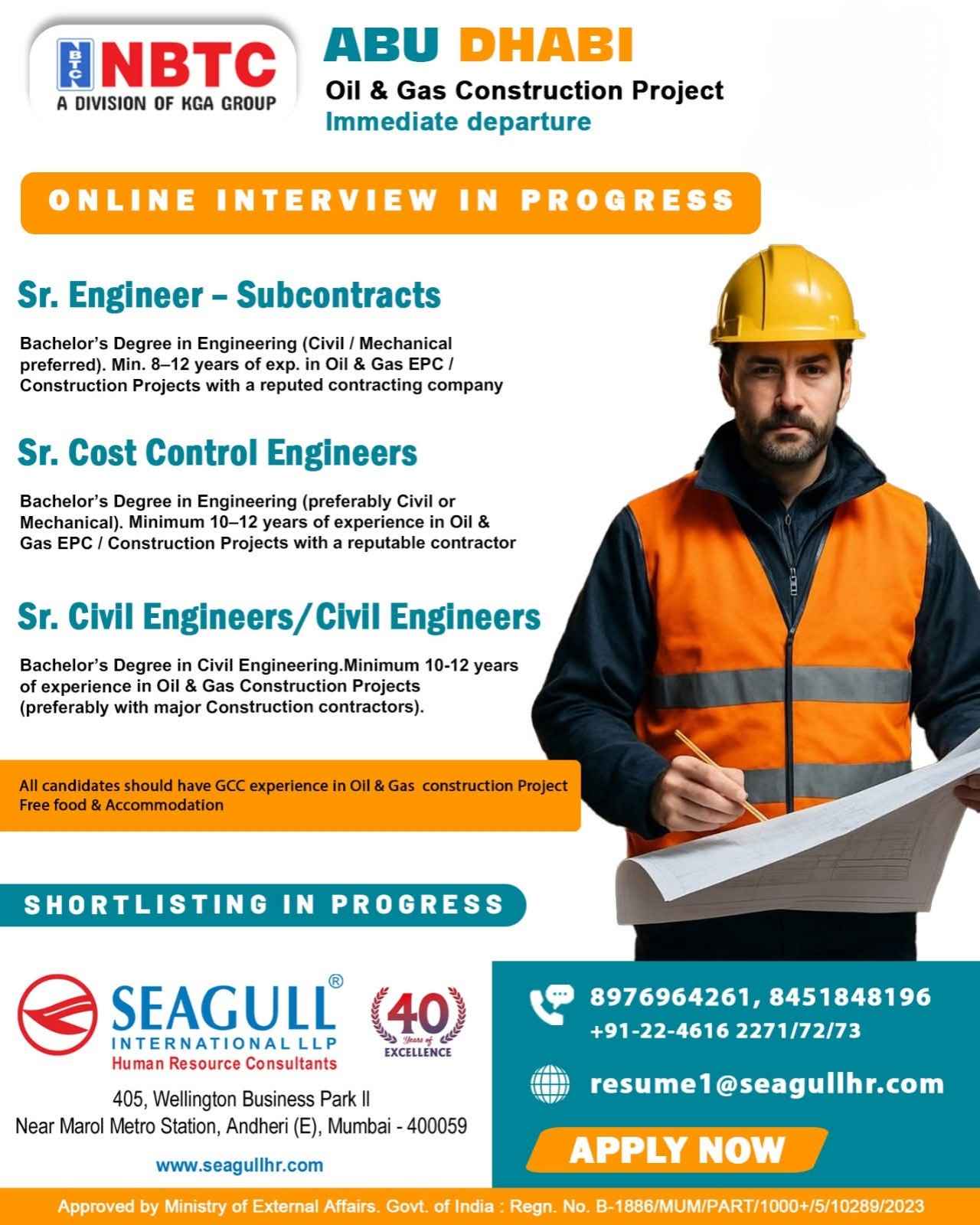 Urgent Requirement ABU DHABI Oil & Gas Construction Project
