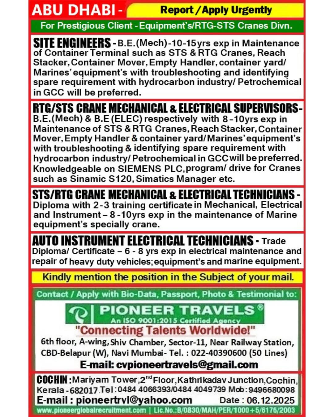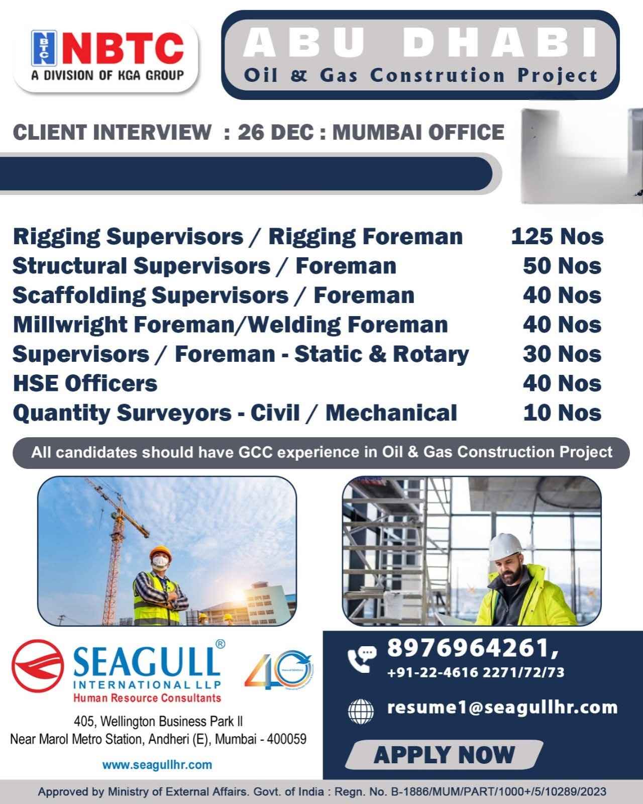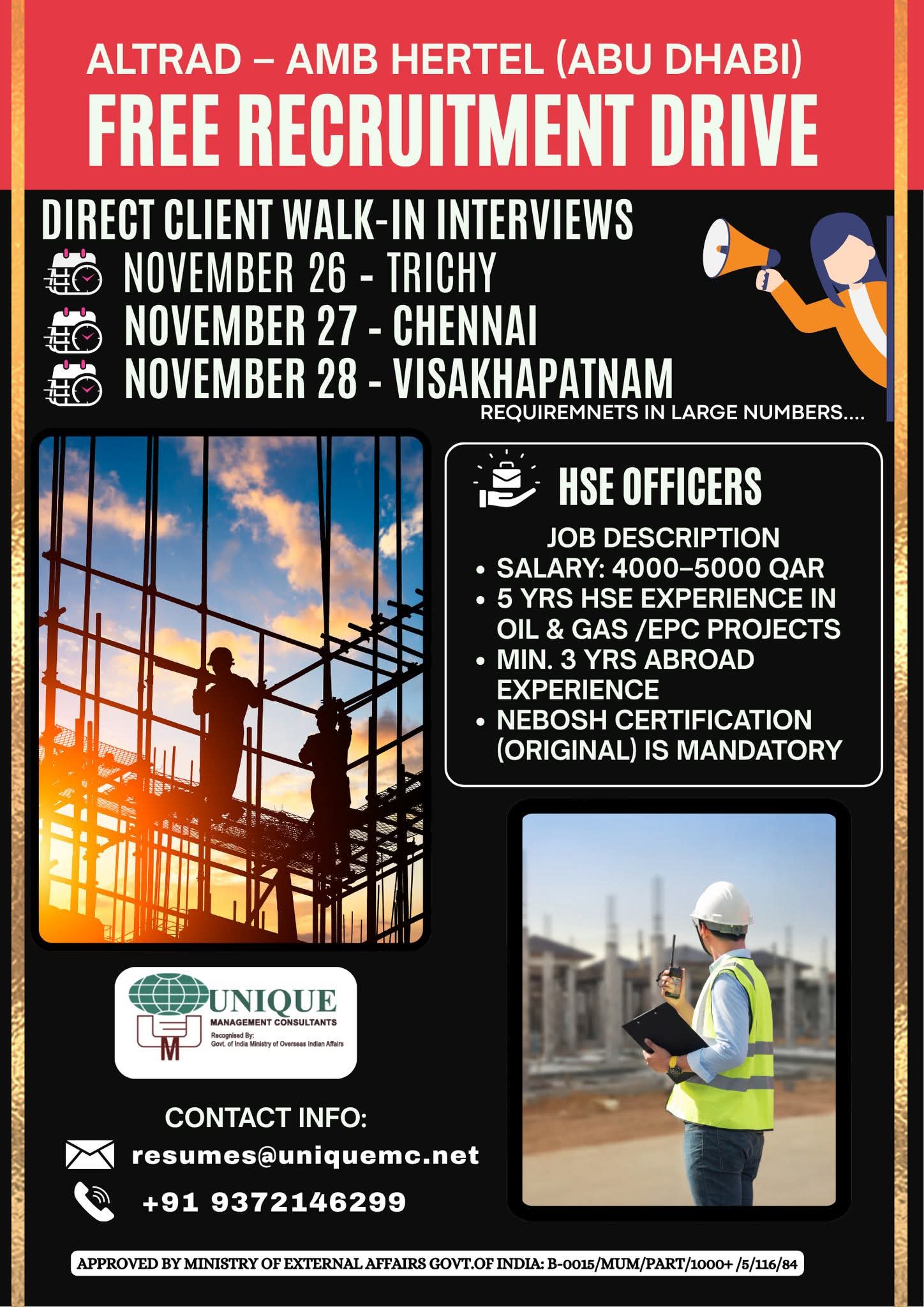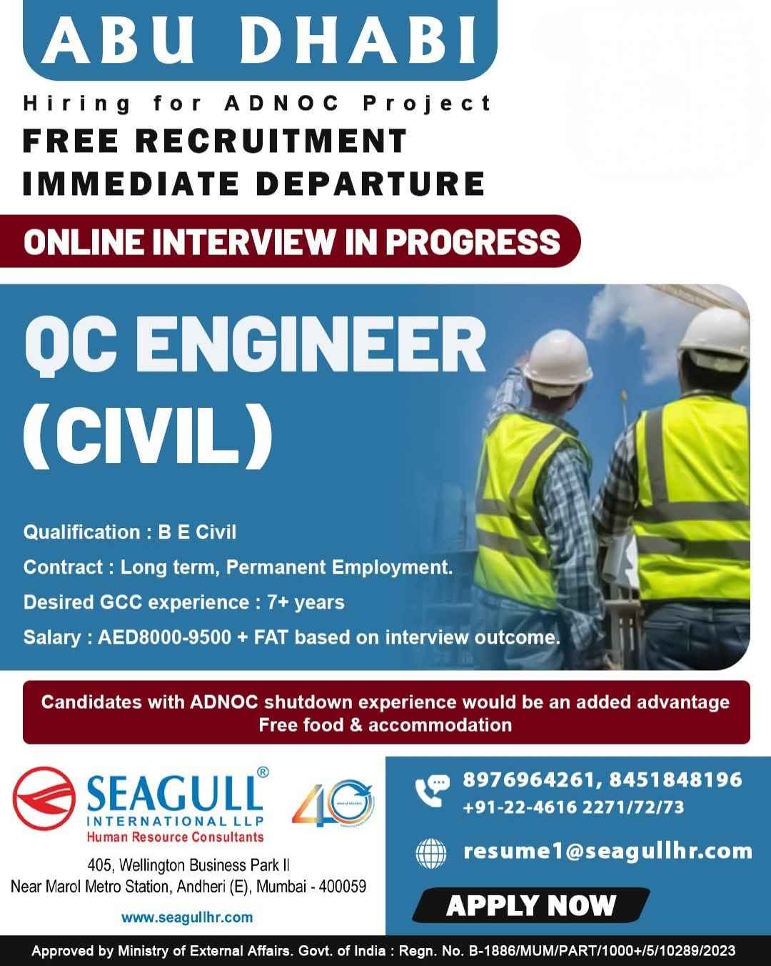 Urgent Requirement ABU DHABI Oil & Gas Construction Project