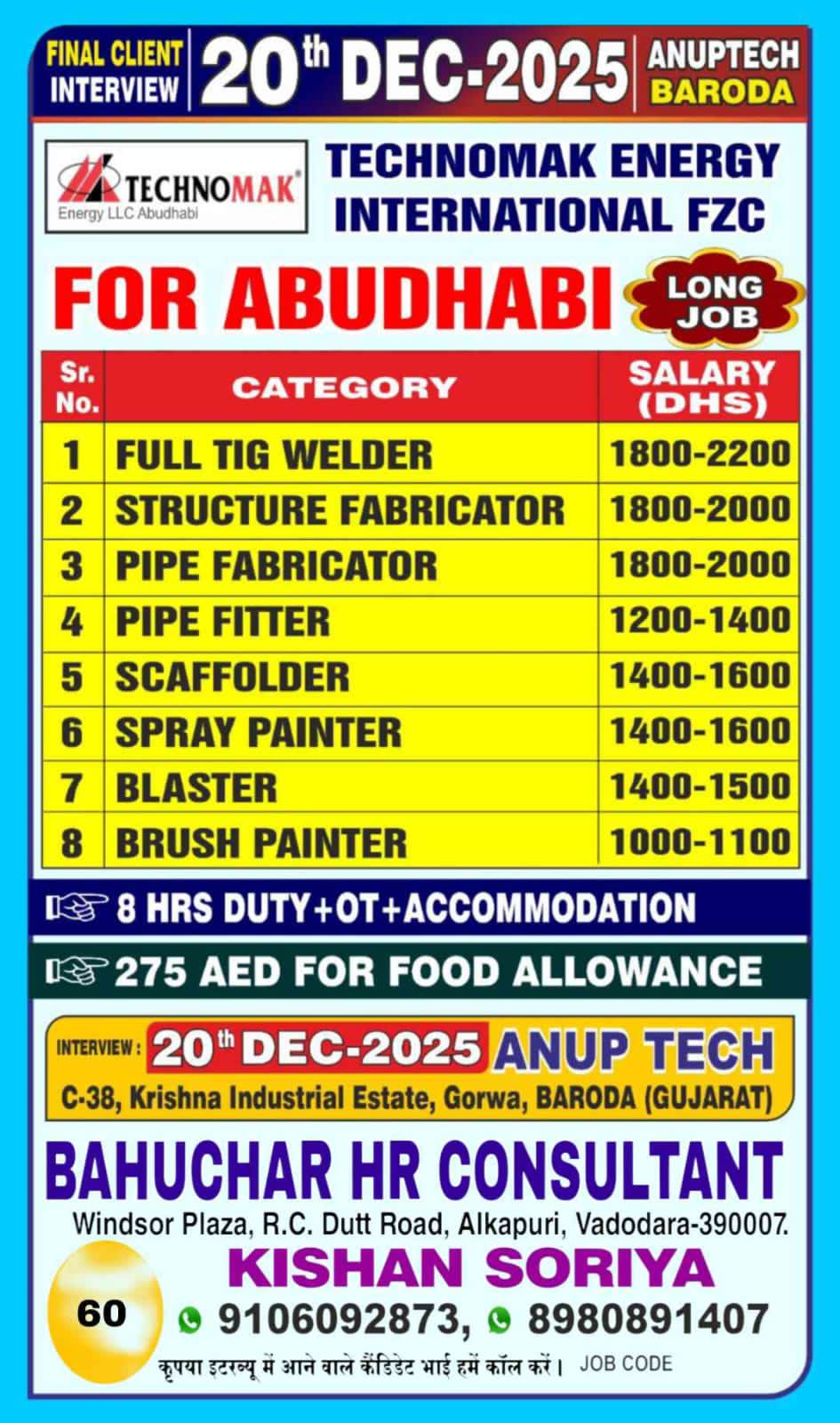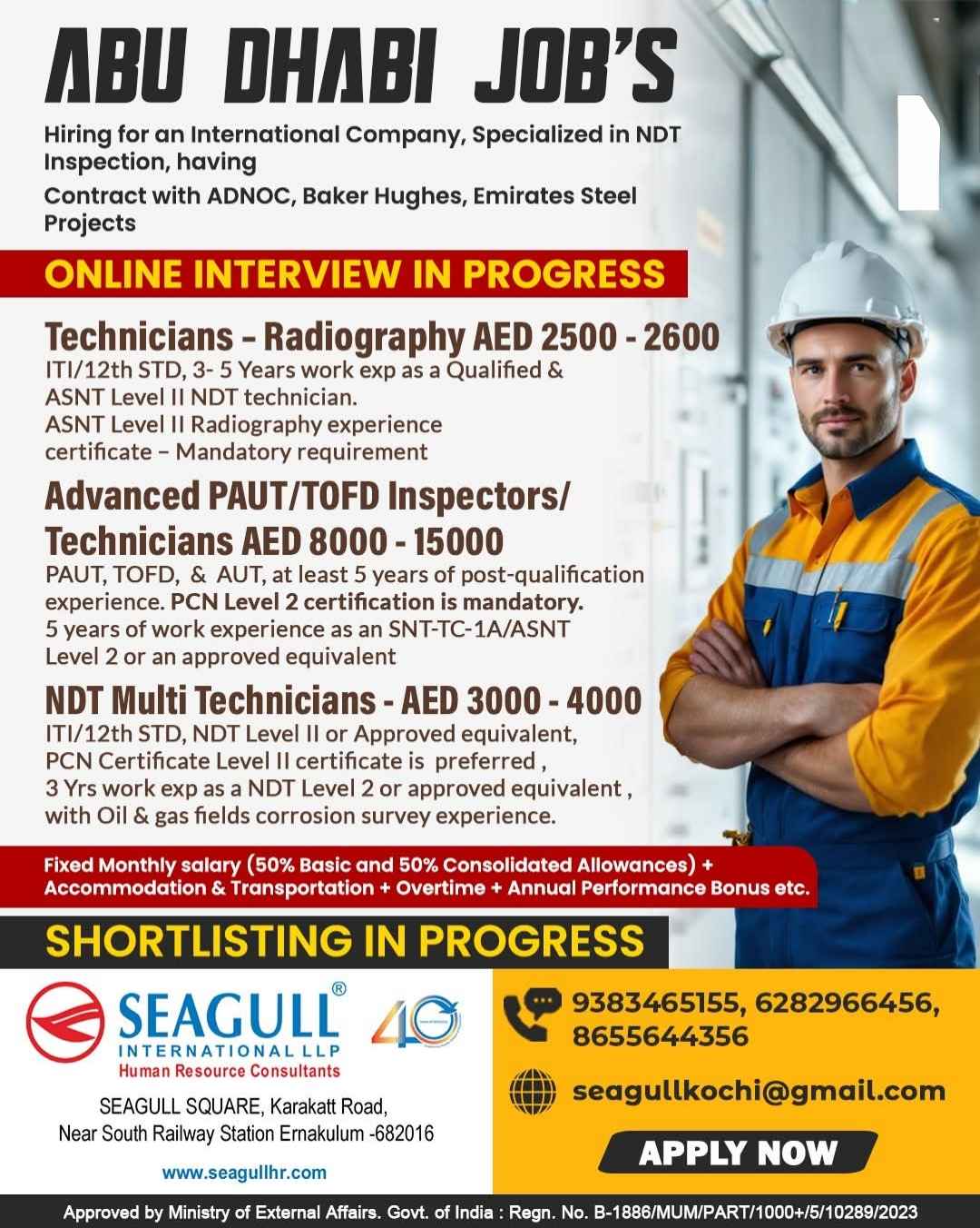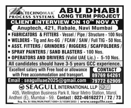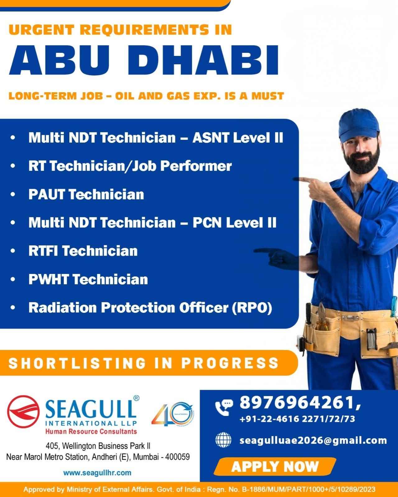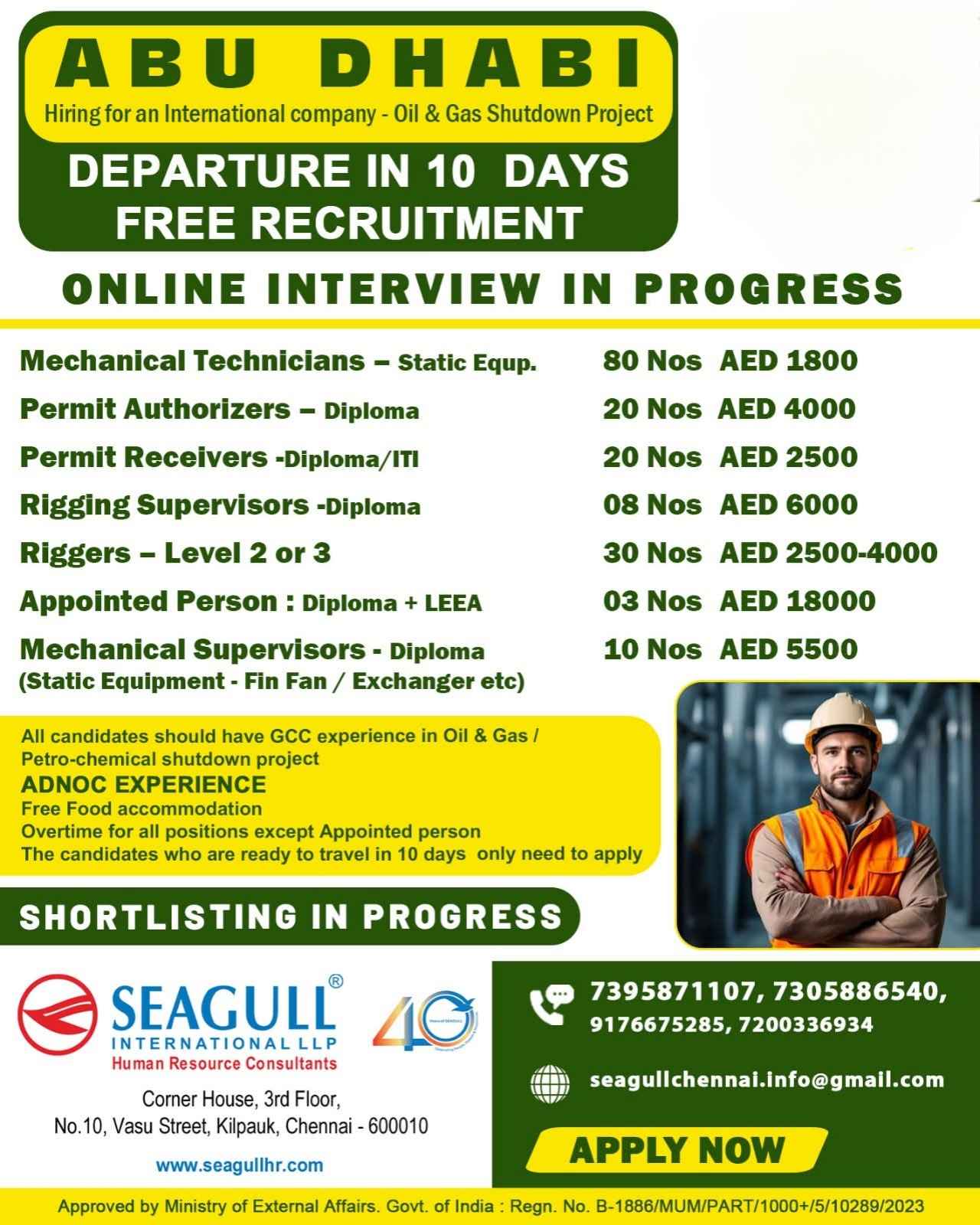 URGENTLY REQUIRED FOR A LEADING OIL & GAS COMPANY FOR THEIR SHUTDOWN PROJECT IN ABU DHABI